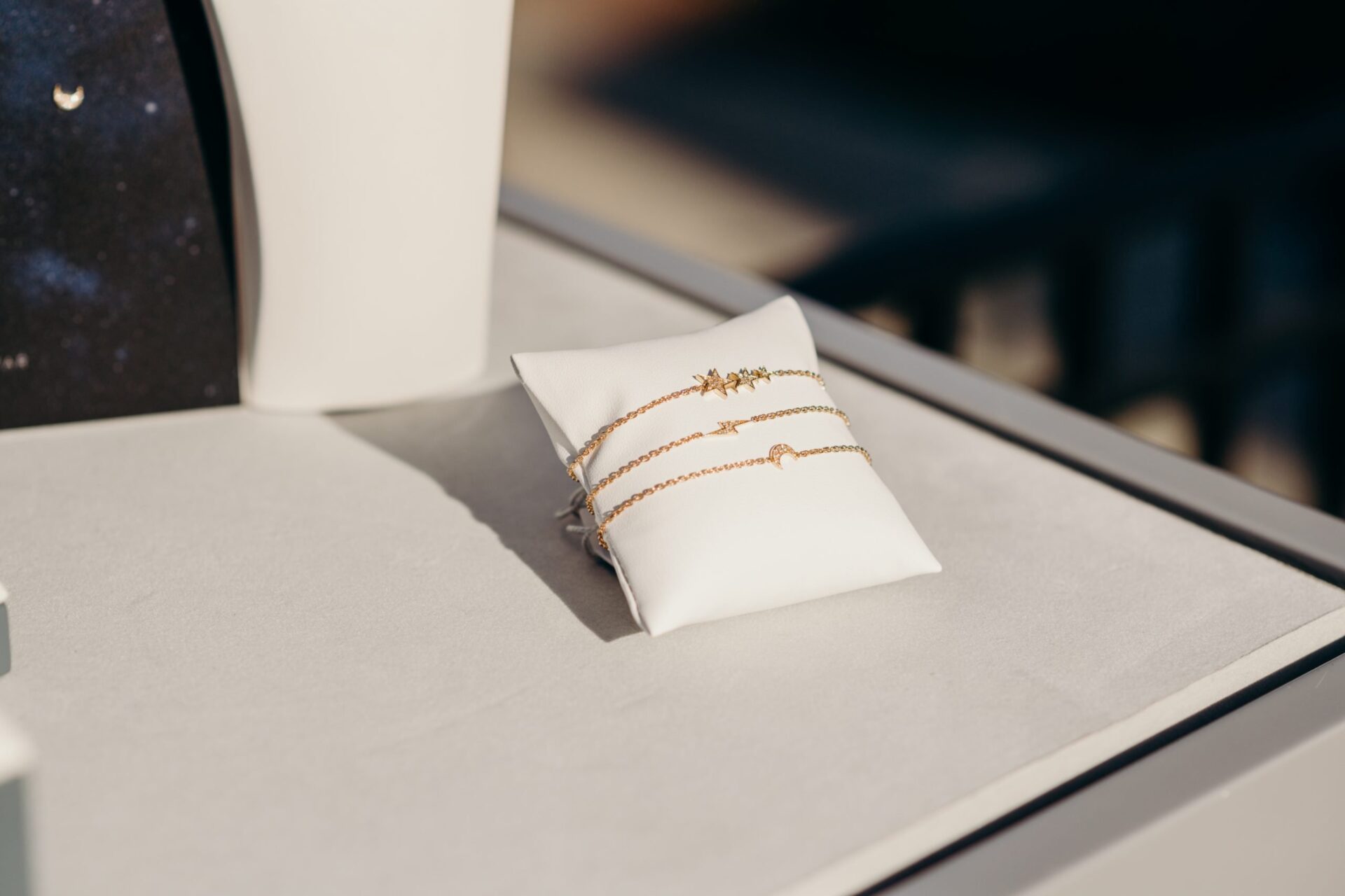 Uma coleção com dez joias em ouro e diamantes que representam o céu noturno e a beleza das constelações. Com formas simples e brilhantes, as peças da coleção foram desenhadas para serem utilizadas em todas as ocasiões.