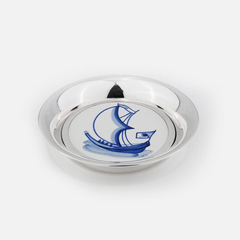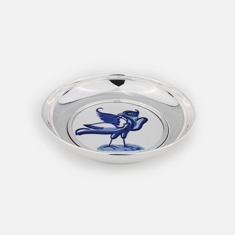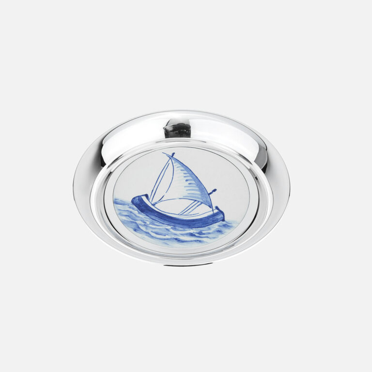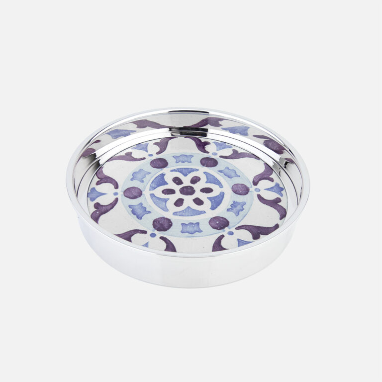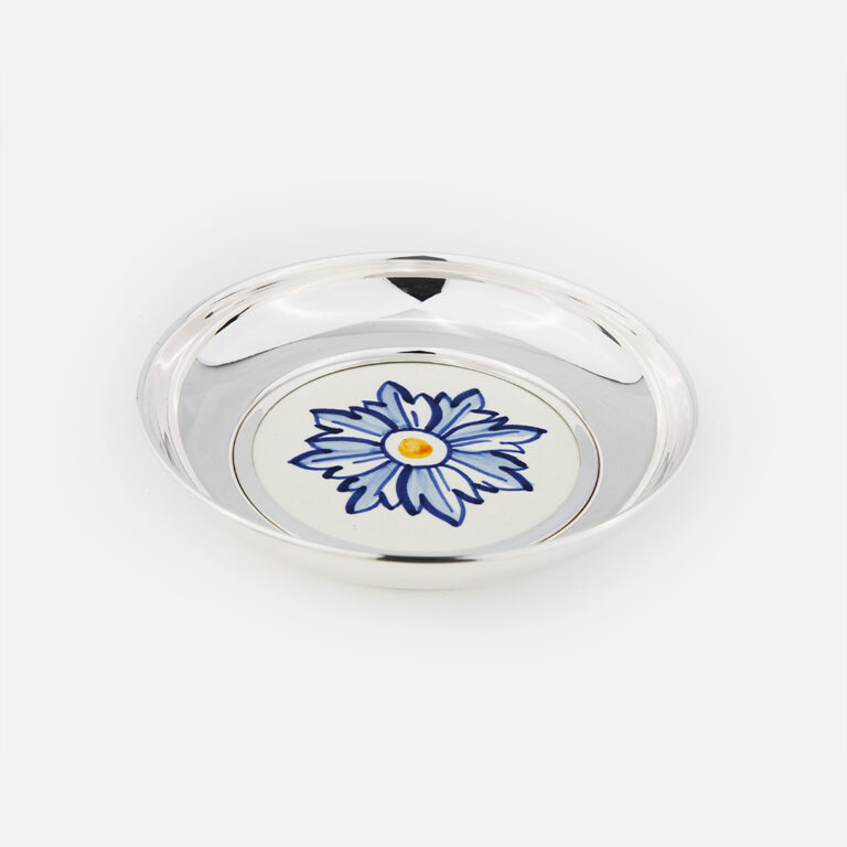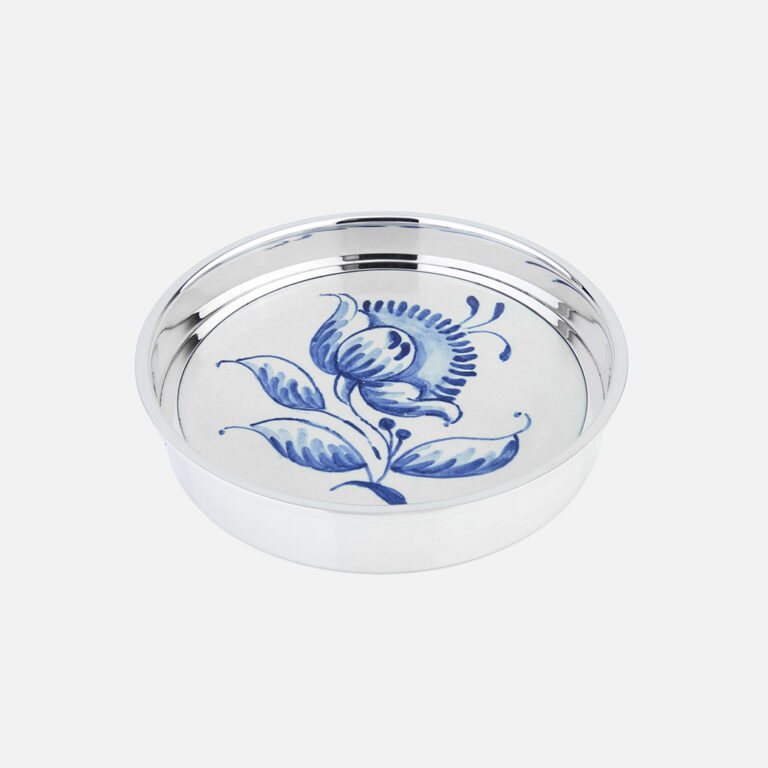 As ruas de Lisboa e os seus edifícios forrados a azulejo português, inspiram os desenhos da coleção de decoração Azulejo. Uma coleção em prata pintada à mão, onde encontra bases de garrafa de vinho, salvas e caixas de encantar.
