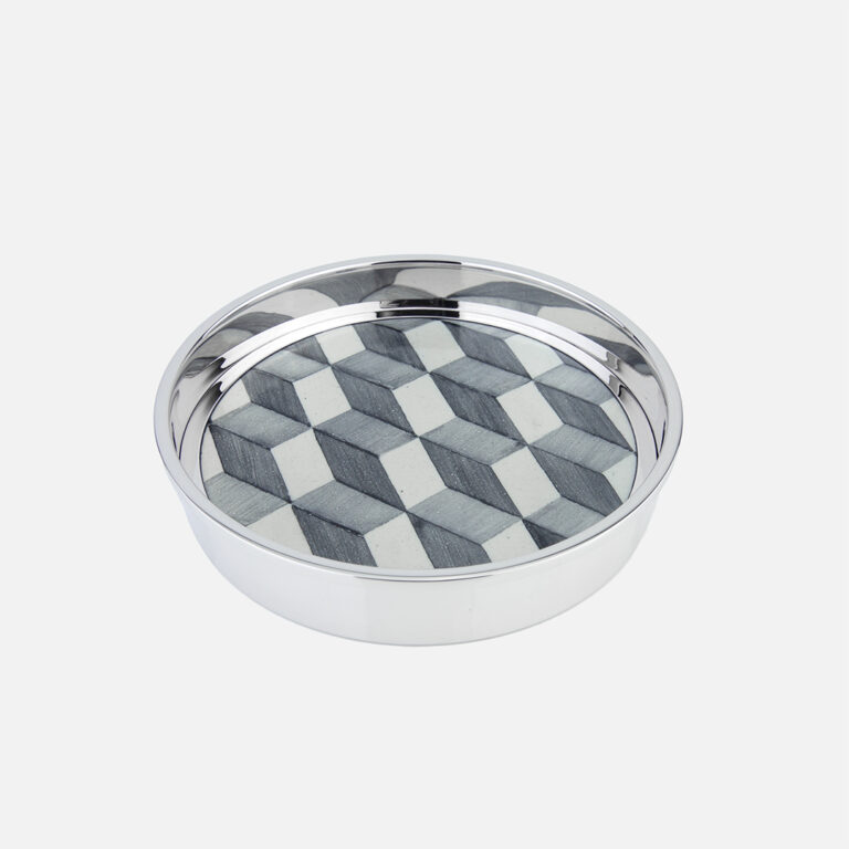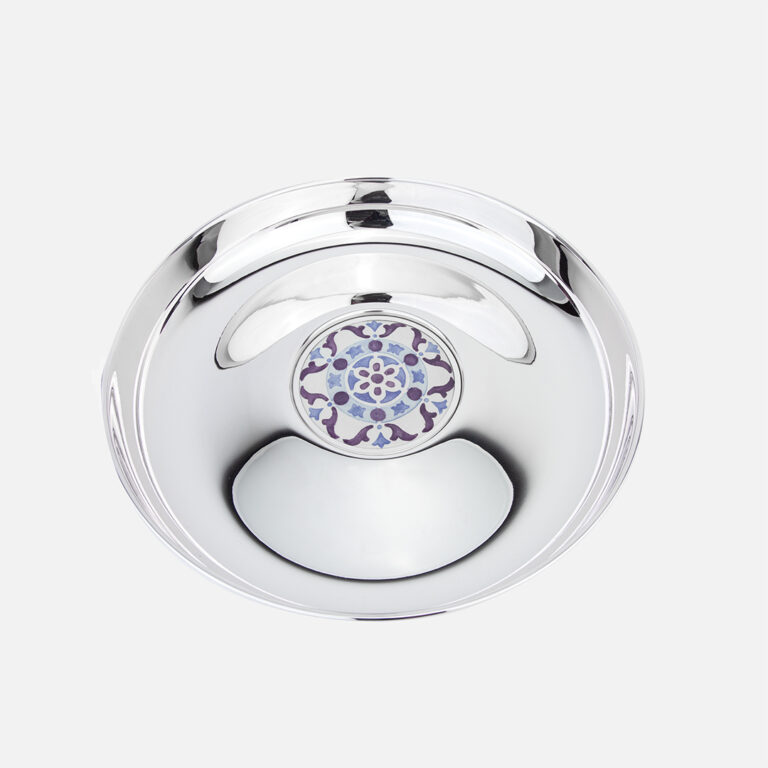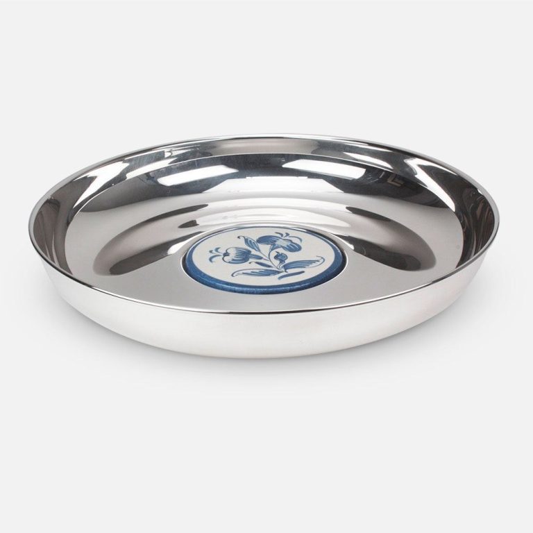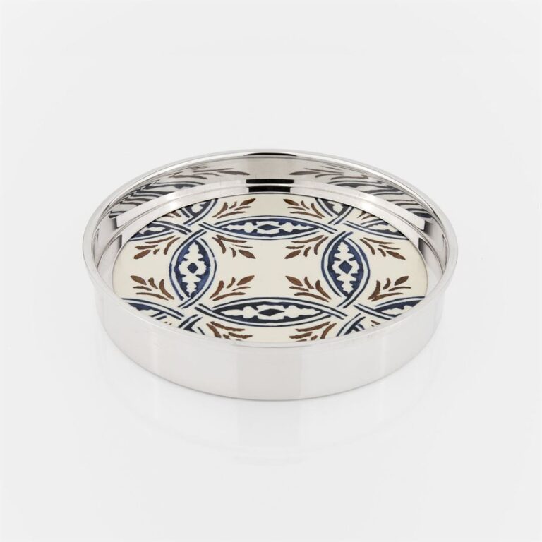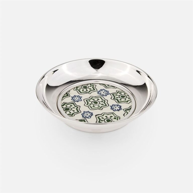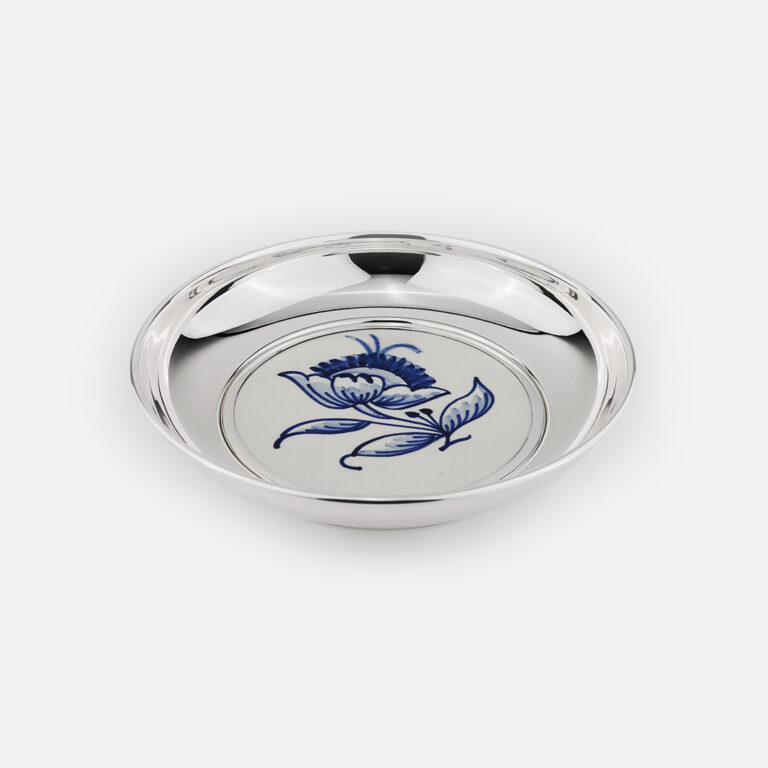 As ruas de Lisboa e os seus edifícios forrados a azulejo português, inspiram os desenhos da coleção de decoração Azulejo. Uma coleção em prata pintada à mão, onde encontra bases de garrafa de vinho, salvas e caixas de encantar.