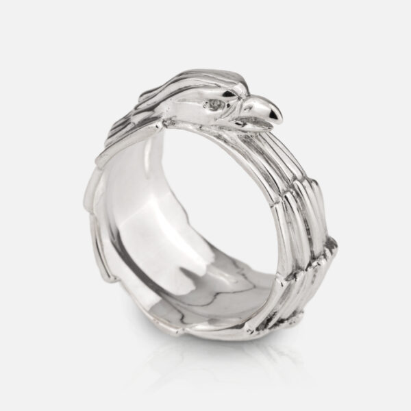 After being transformed into silver, the piece follows a variety of goldsmithing techniques such as bench work and the application of chisels, a technique that gives the piece expression.