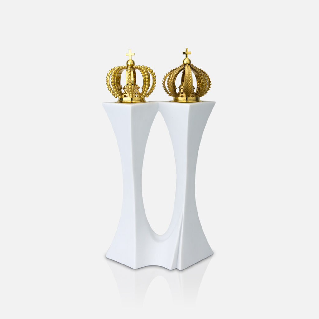The concept of dual functionality there is the possibility of removing the crowns and transforming the piece into a candlestick or double solitaire.