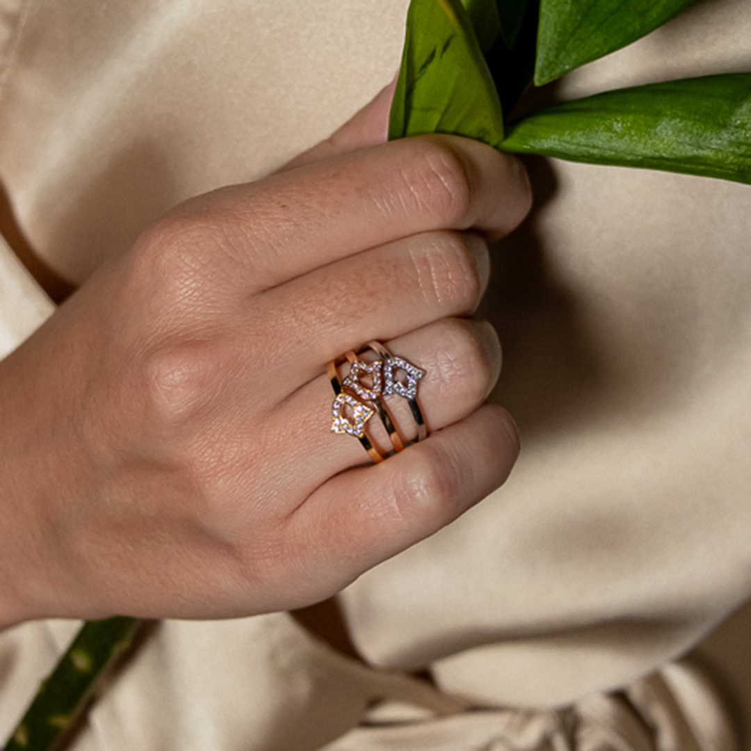 The ring can be used alone or with two other rings from the collection deLírio in yellow and rose gold.