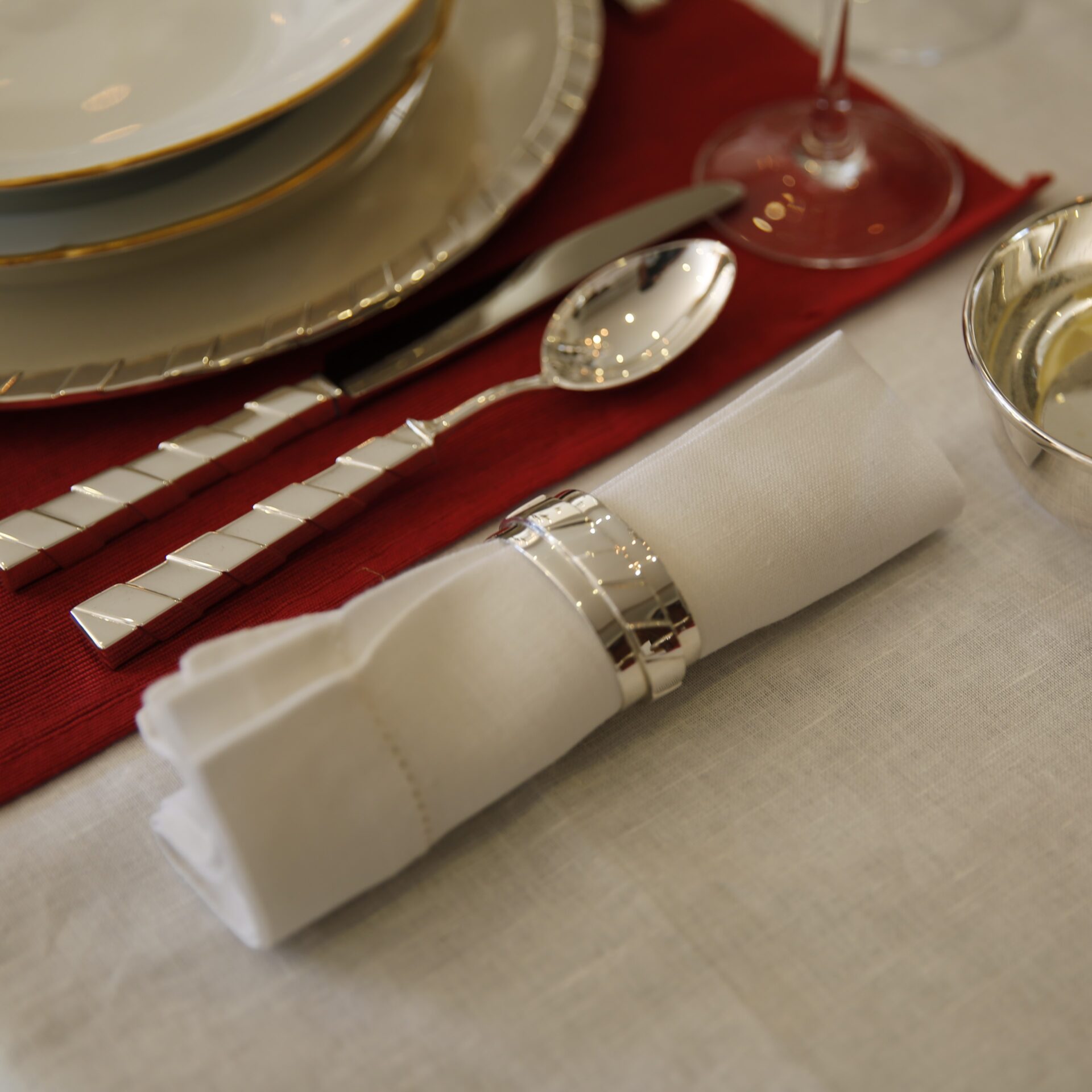Discover the exquisite manufacture of Leitão & Irmão napkin rings. Meticulously crafted in our workshops, the napkin rings are silver pieces that elegantly elevate any table, whether it's everyday or a special occasion. An elegant and utilitarian gift for a couple, a christening present or a wedding anniversary. Pedro Leitão, the Leitão family's renowned artist, has designed a vast collection of Art de La Table pieces, including napkin rings, cutlery and tableware. A modern design for classic, timeless pieces.