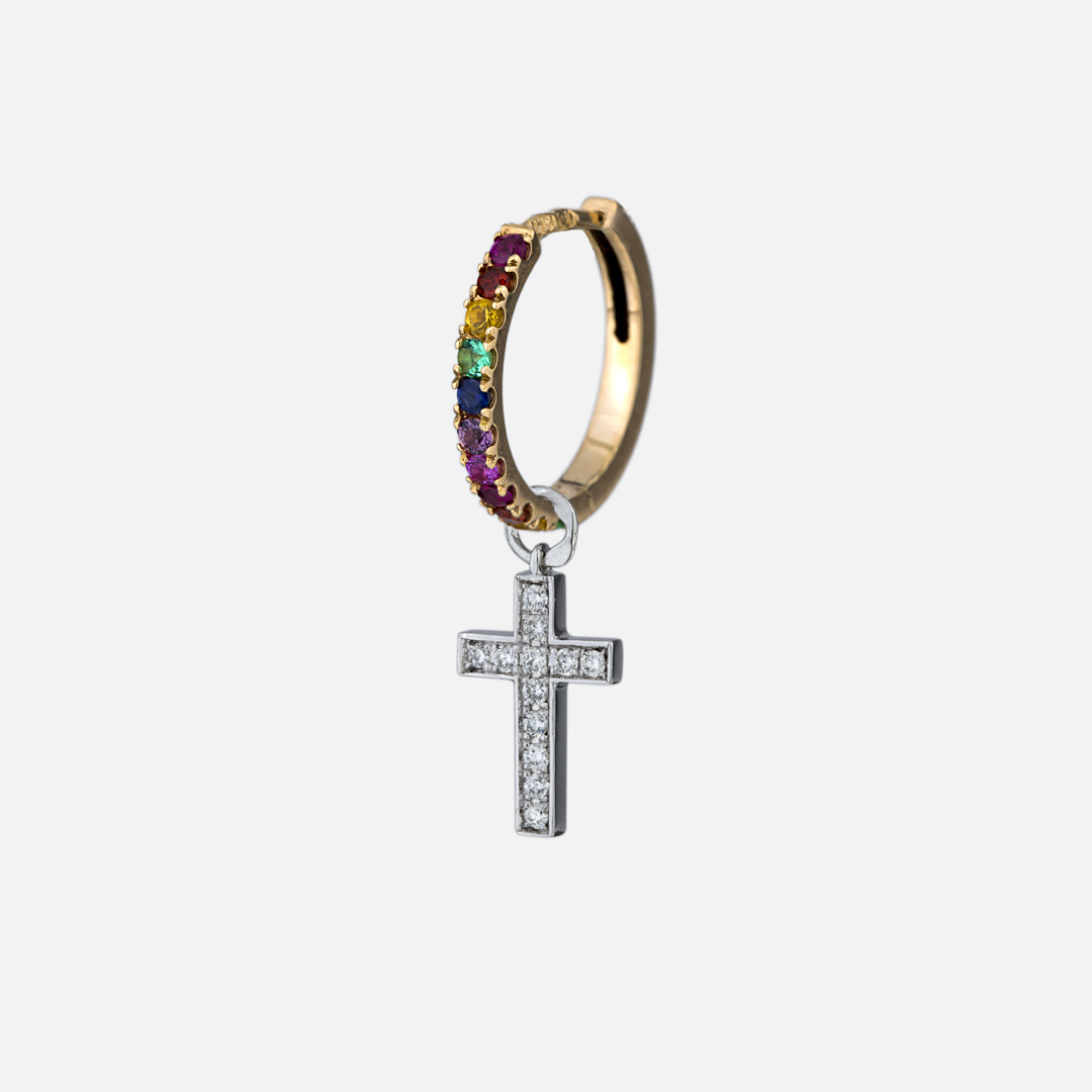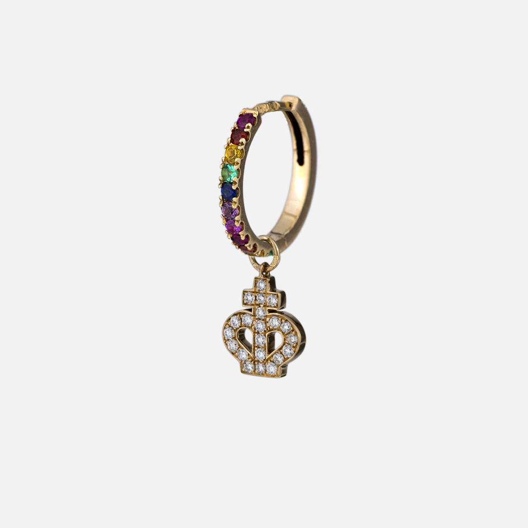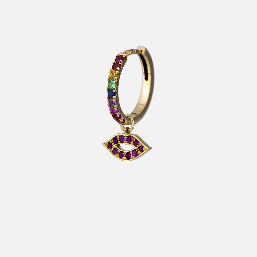 Cravadas com uma combinação de rubis e safiras numa argola de ouro rosa, podem-se contar nelas as sete cores do arco íris.