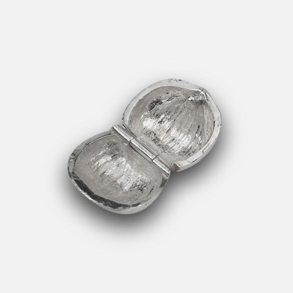 Perfect little boxes to collect, to give to nature lovers, those who have everything or a box to put their pills in. Frutos da Terra transforms the fruits that the earth gives us into small, precious silver boxes, manufactured in the Leitão & Irmão workshops. The hazelnut is nutritious, tasty, a gift from nature. Now in hand-carved 925 silver.