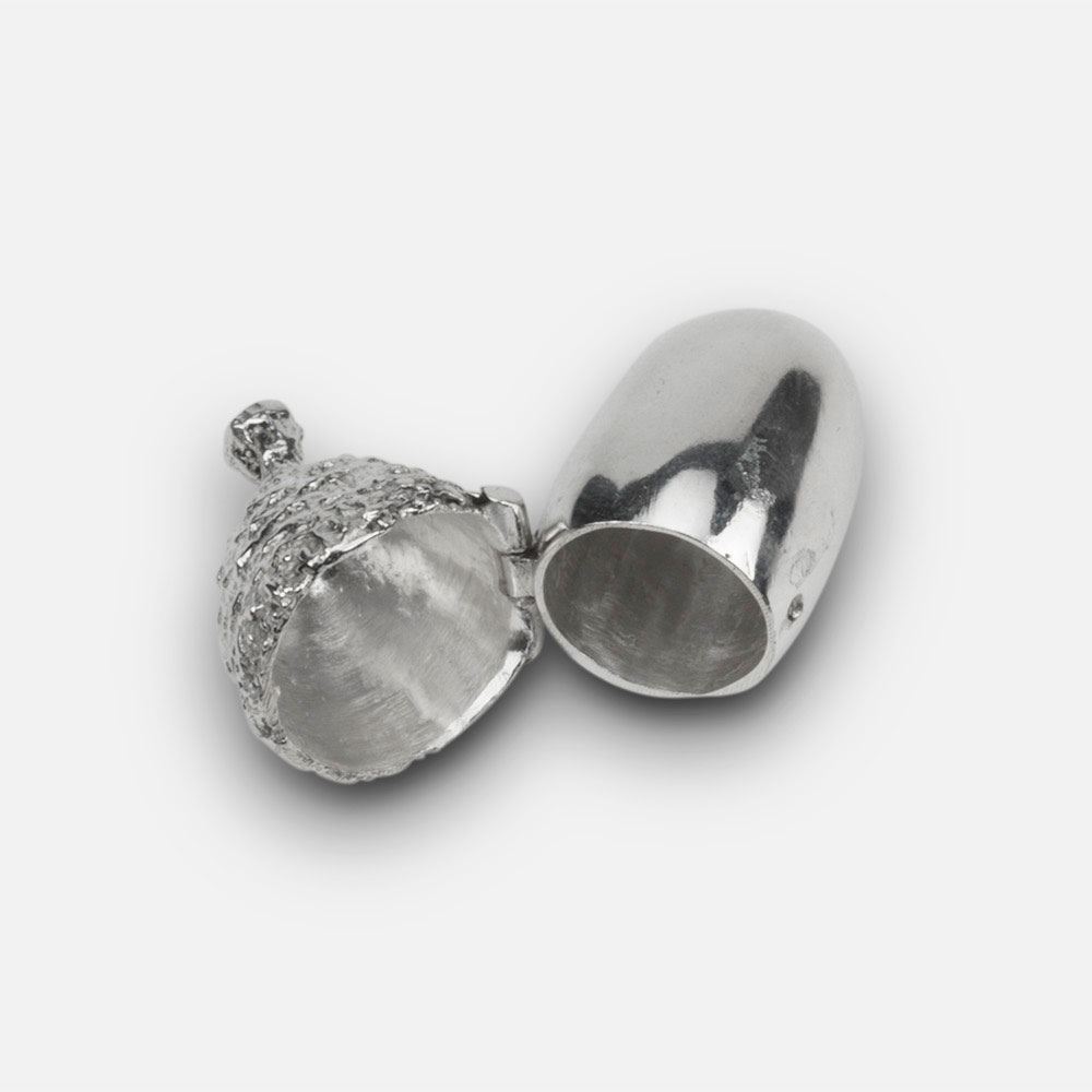 Perfect little boxes to collect, to give to nature lovers, those who have everything or a box to put their pills in. Frutos da Terra transforms the fruits that the earth gives us into small, precious silver boxes, manufactured in the Leitão & Irmão workshops. The acorn is originally humble, a gift from nature. Now in hand-carved 925 silver.