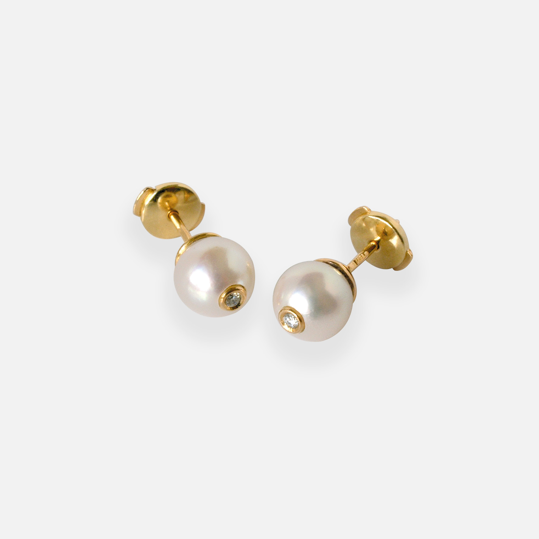 The Yellow Gold Pearl and Diamond Earrings from the Akoya Collection are a combination of classic elegance and refined brilliance.