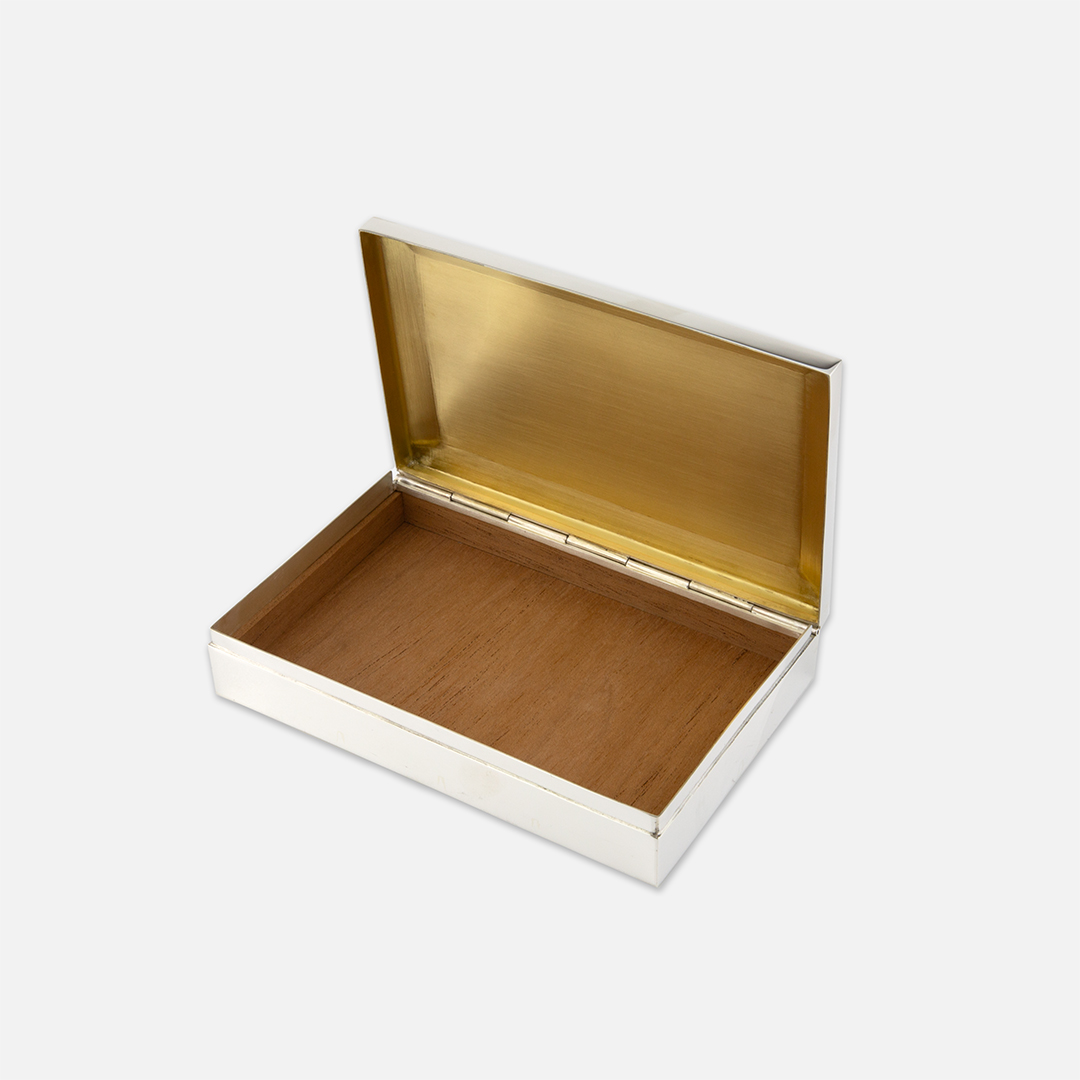 The Table Box in silver with plain lid is a sophisticated and functional decoration piece that adds elegance and style to any environment.