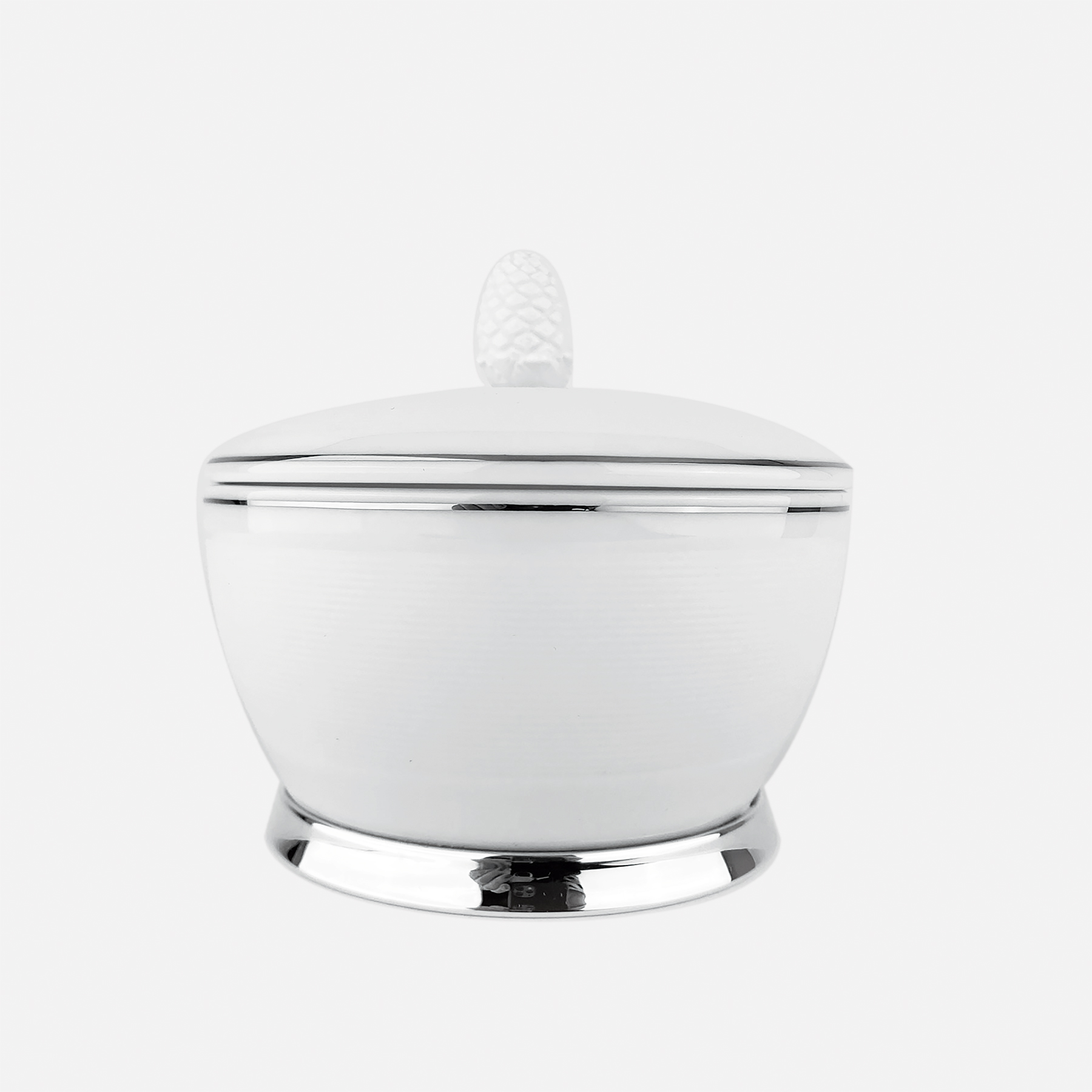 Striped box in biscuit porcelain and silver | Pine cone lid