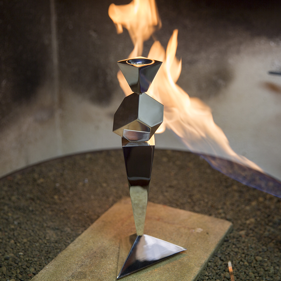 Formas geométricas inspiradas nas pirâmides do Egito desenham o castiçal Les Pyramides, manufaturado em prata. Uma obra de decoração desenvolvida pelos nossos mestres joalheiros, digna de Cleopatra.