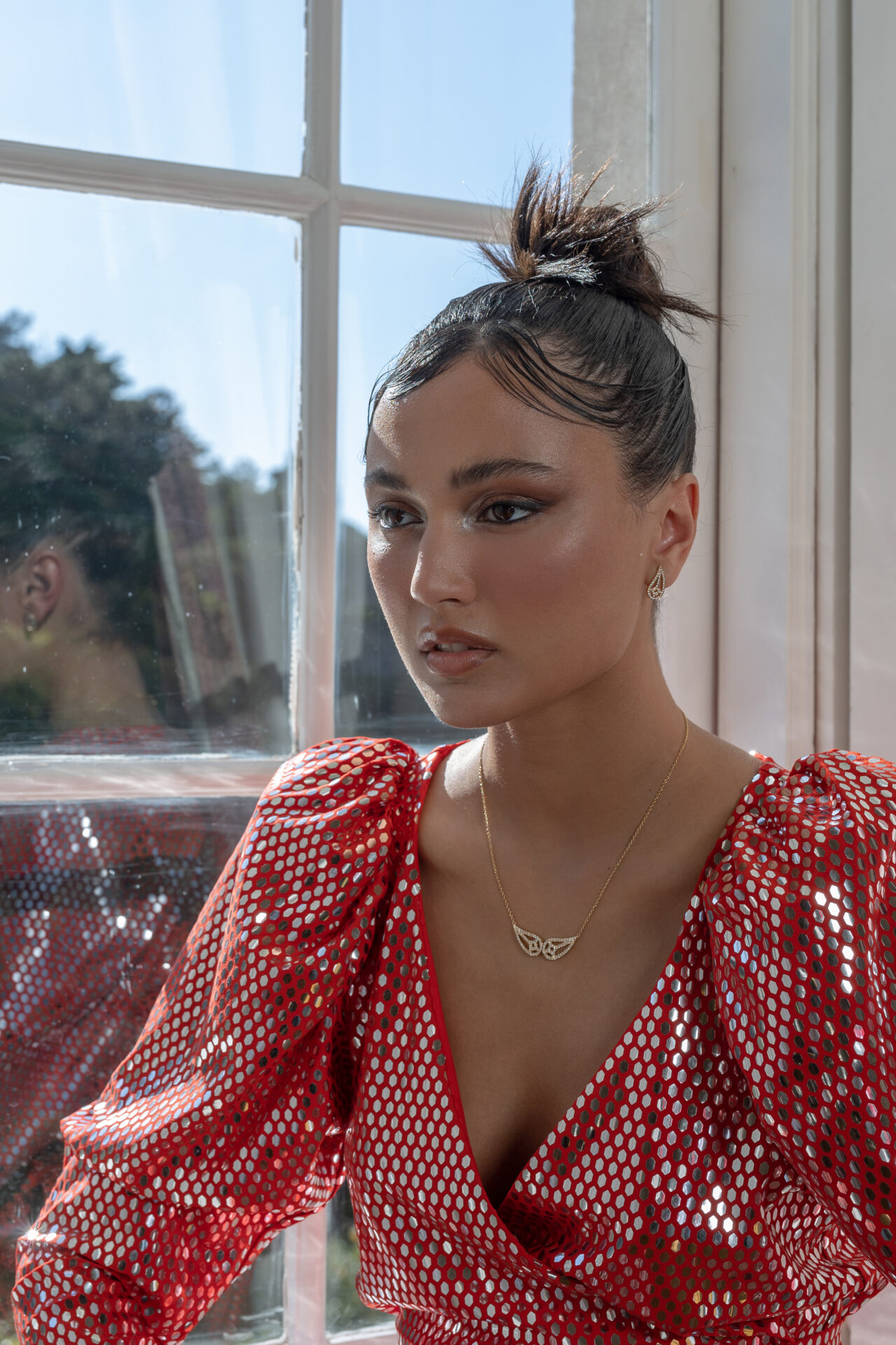 94 diamonds inspire this edition of the Promessa de Amor collection. Filled with diamonds, it recalls the brilliance of the stained glass windows of the Monastery that inspires the collection. The necklace joins in opposition the design of this edition. A modern and elegant design, carefully developed by hand in the Leitão & Irmão workshops. A unique design piece for an elegant woman who likes to shine with diamonds.