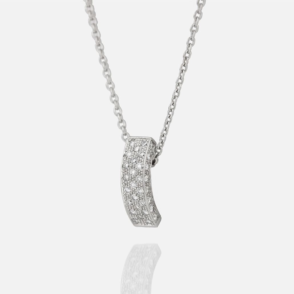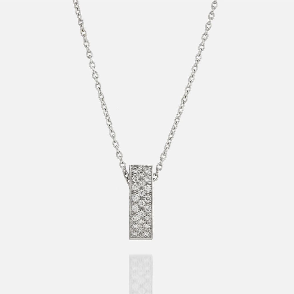 The Pavé necklace with white gold pendant with diamonds from Casa Leitão & Irmão is a classic piece of jewellery in which the brilliance of the brilliants is enhanced by the "PAVÊ" engraving.
