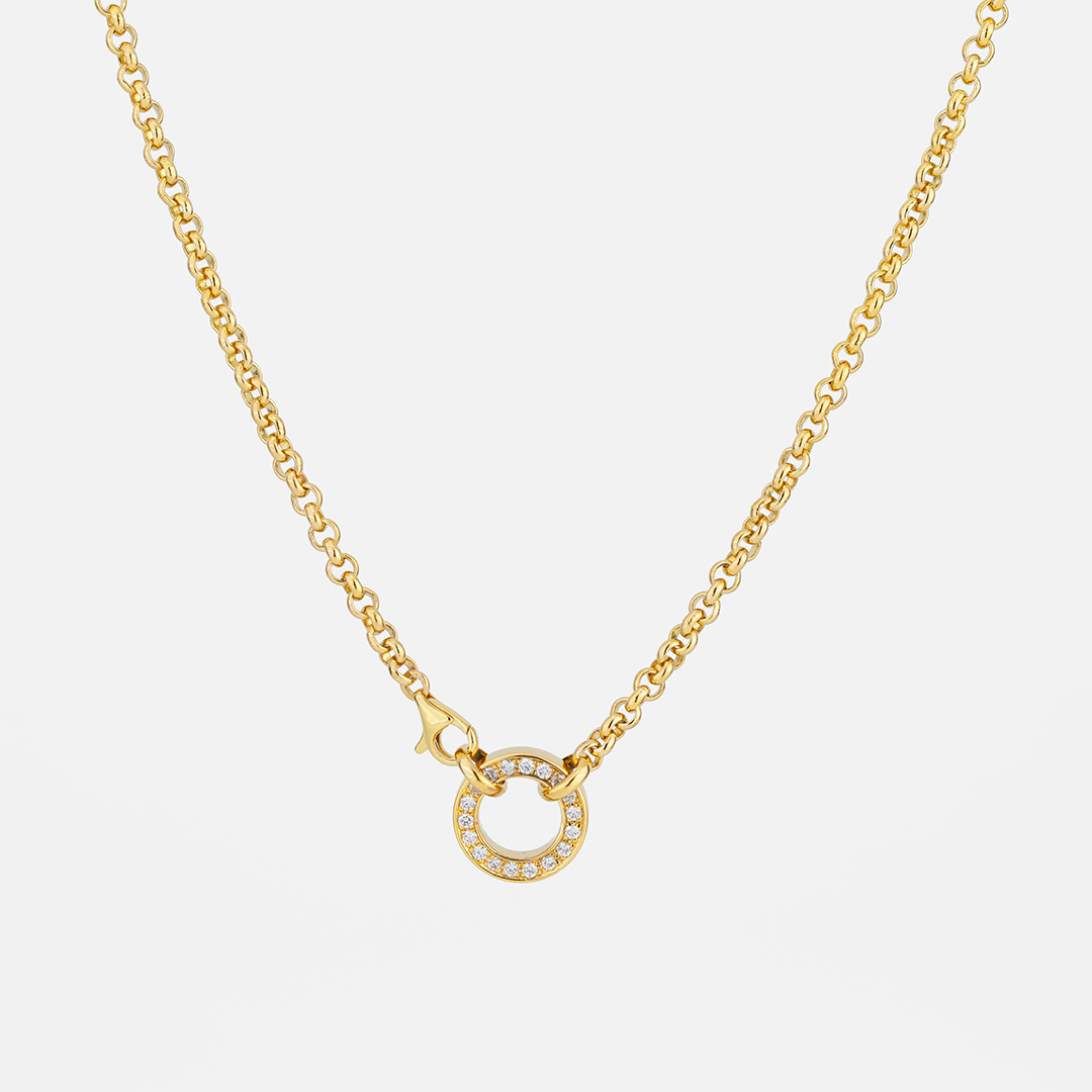 Necklace in yellow gold, a modern jewel enriched with the shine of diamonds and sapphires, a tribute to the traditional Portuguese Cord.
