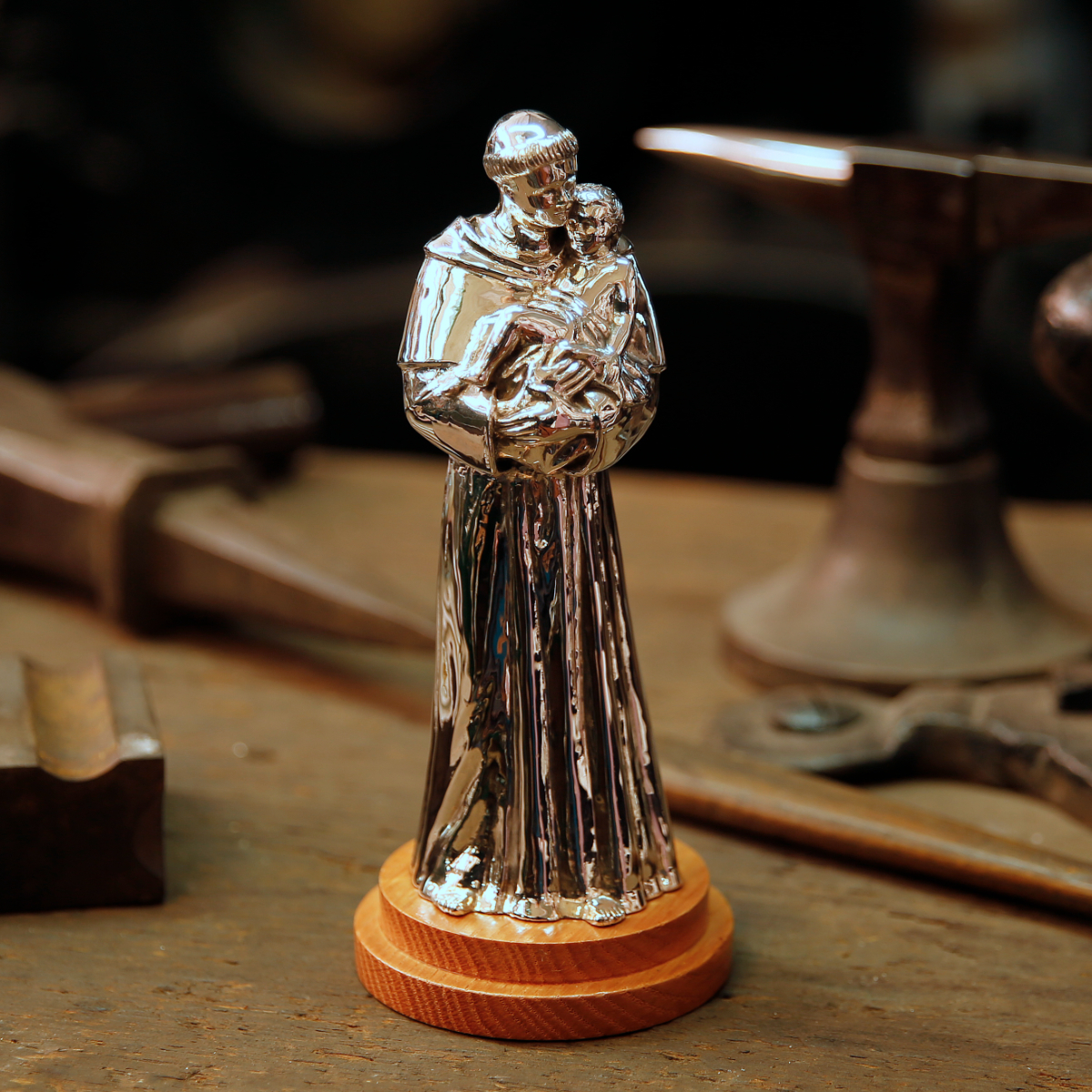 Discover the Sculpture of Saint Anthony, made in 925 silver from original plaster casts, from which it was possible to make the molds and tools for its production. Portraying the Patron Saint with baby Jesus on his lap in a simple image of protection and love, the sculpture makes a magnificent decoration or religious gift. The Sculpture of Saint Anthony is part of an original edition, numbered and limited to 1195 copies, commemorating the year of his birth.