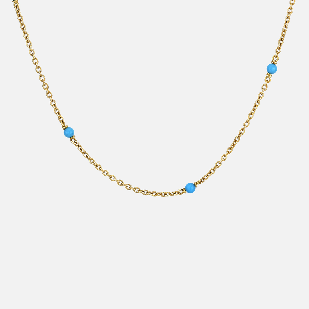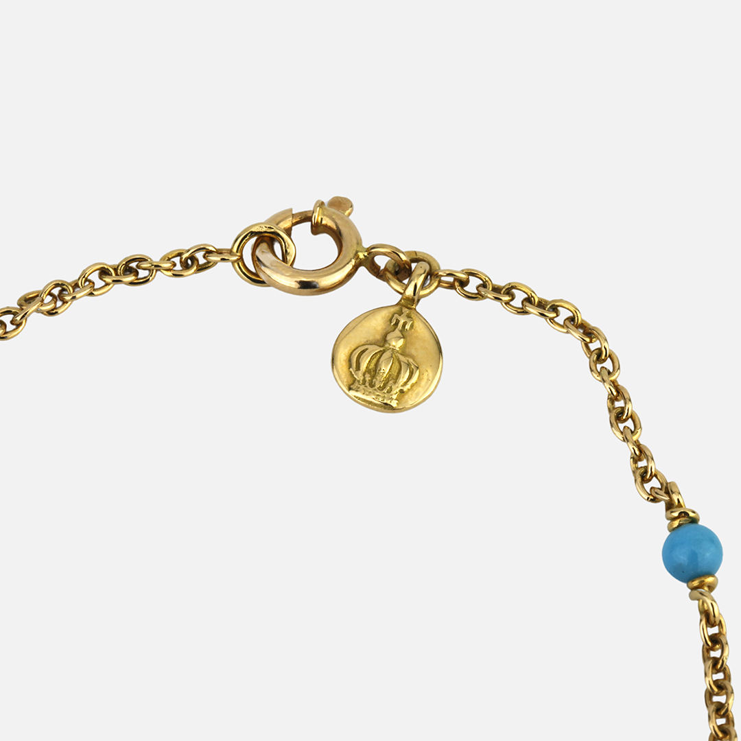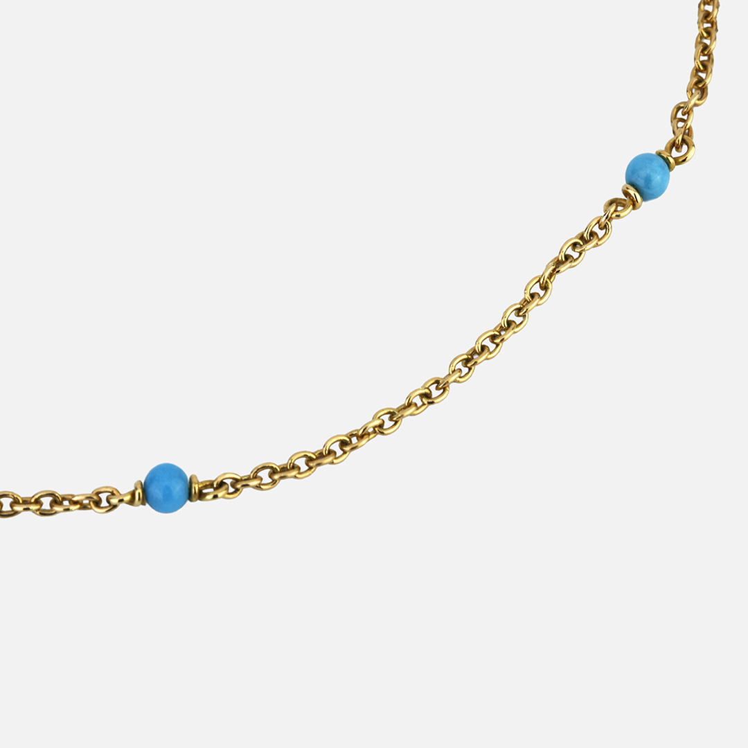 Descubra o fio em ouro amarelo com 8 turquesas da leitão e Irmão. Uma peças elegante, discreta mas com um toque de cor. Ideal para usar no dia a dia.