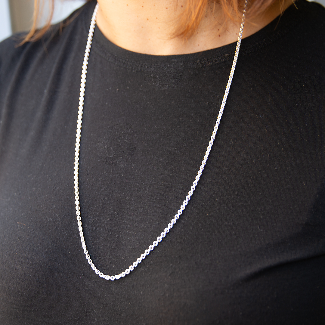 The silver Trace Cut is an elegant and sophisticated necklace with a mirrored design and a thickness of 2.8 mm in silver.