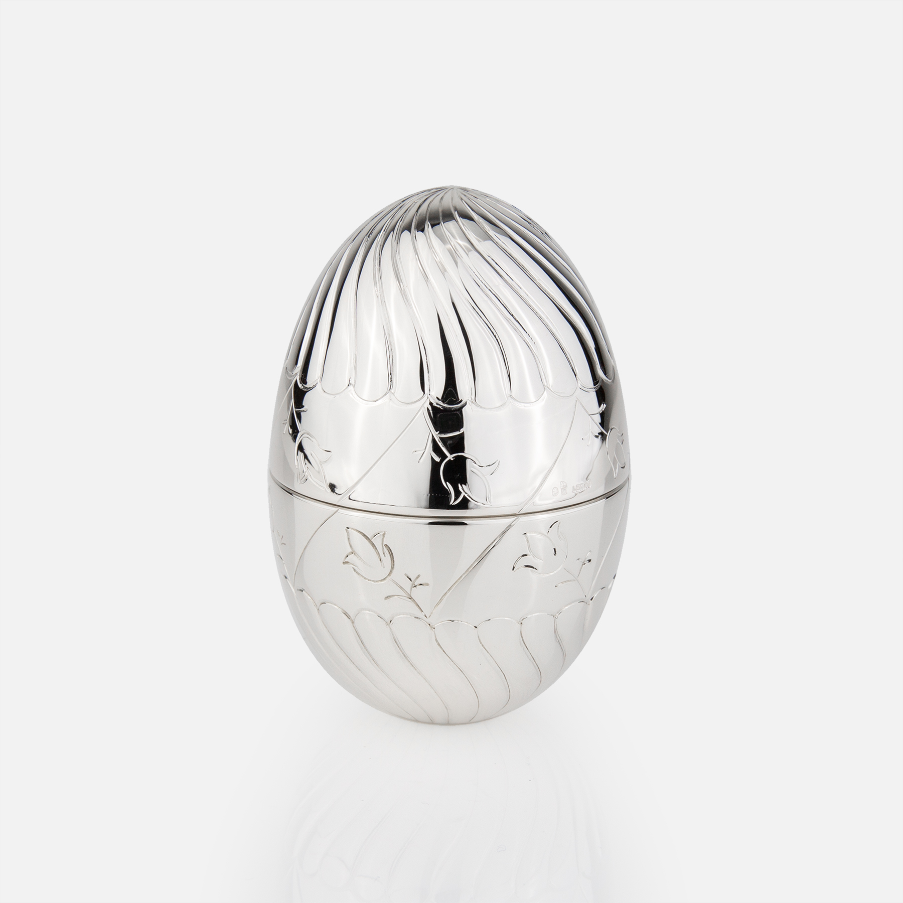 Buds and tulips delicately chiseled in silver. An expert piece of craftsmanship. Whether for a gift or for your Easter egg collection. In 925 silver, manufactured in the Leitão & Irmão workshops, the egg collection is a best seller all year round. An elegant, original and unisex gift.