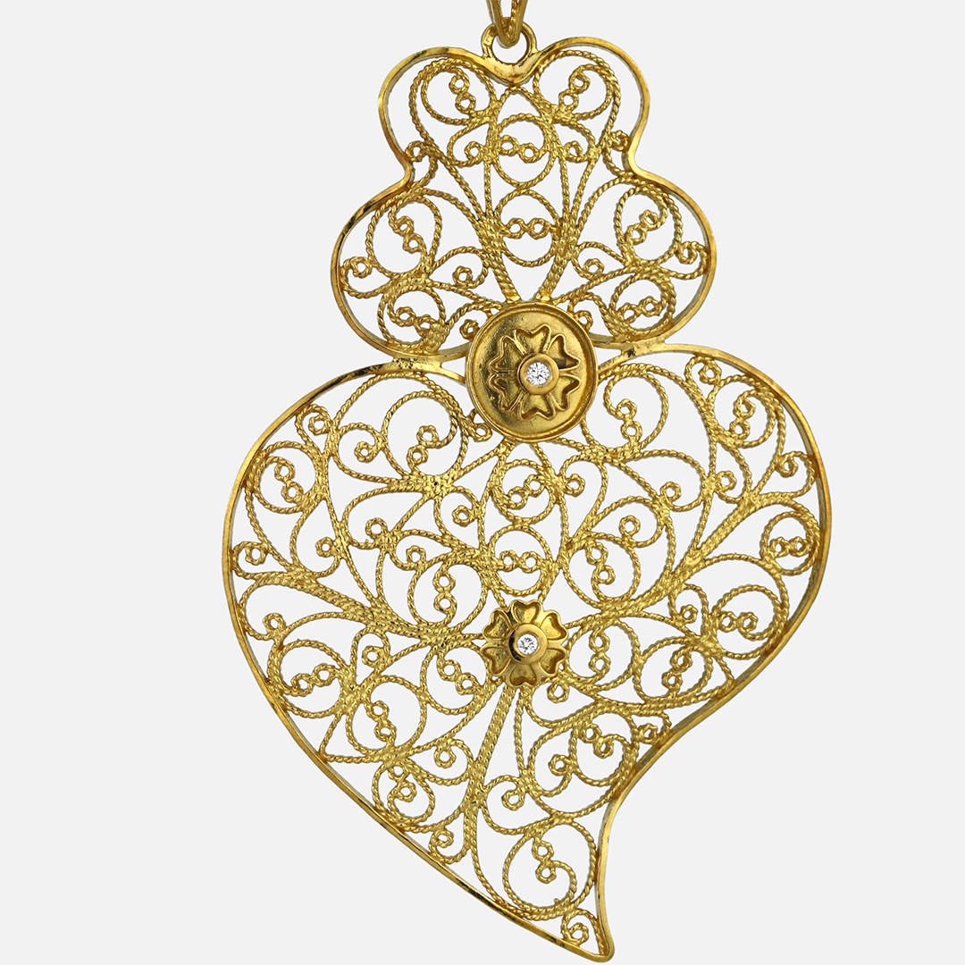 Descubra o pendente coração de viana em ouro e diamantes da Leitão & Irmão.