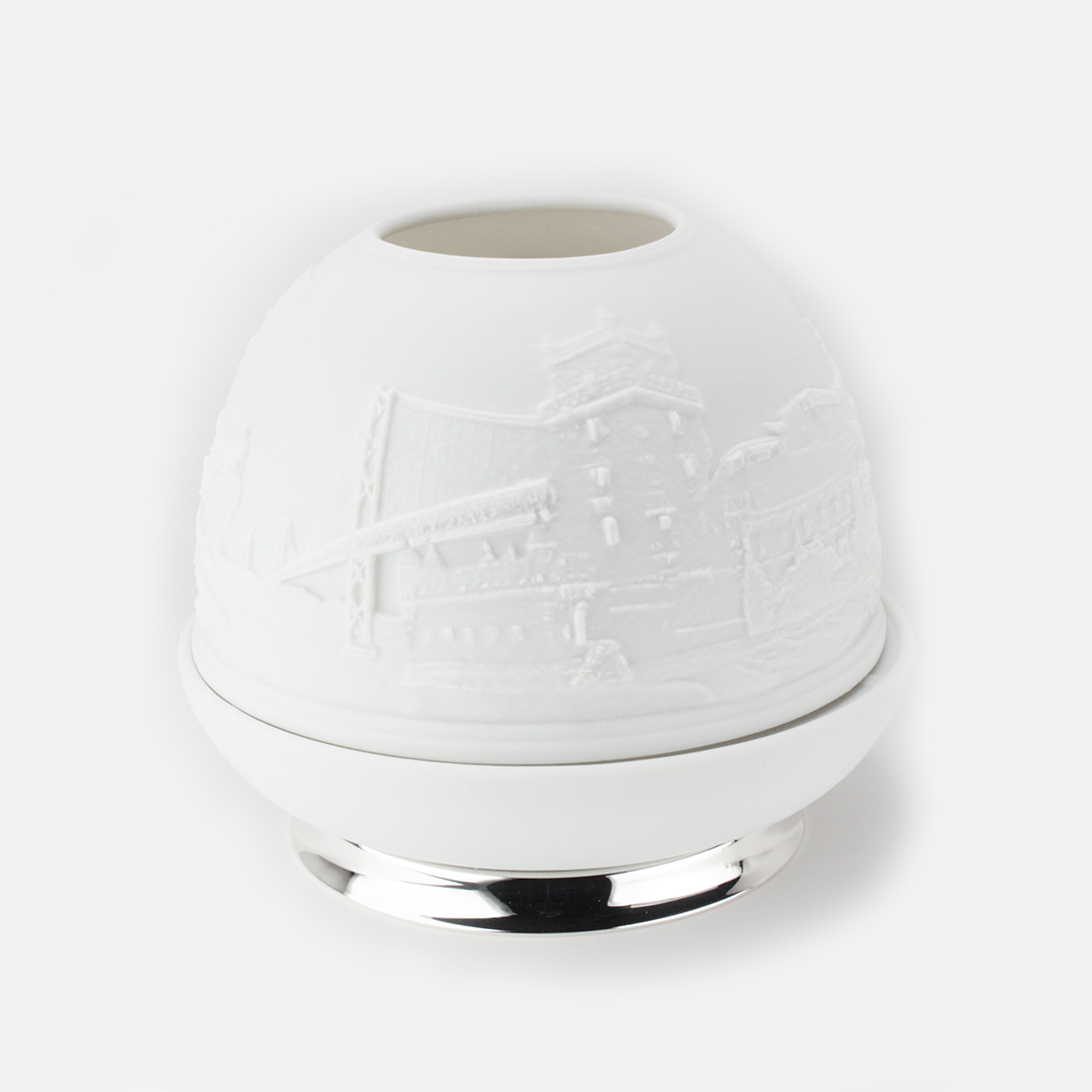 The Belem-inspired Porcelain and Silver Candle Holder is a piece that combines the delicacy of porcelain with the sophistication of silver. Add a touch of elegance and soft light to your space.