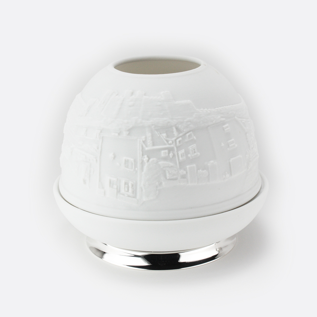 The Porcelain and Silver Candle Holder inspired by the town of Óbidos is a piece that combines the delicacy of porcelain with the sophistication of silver. Add a touch of elegance and soft light to your space.