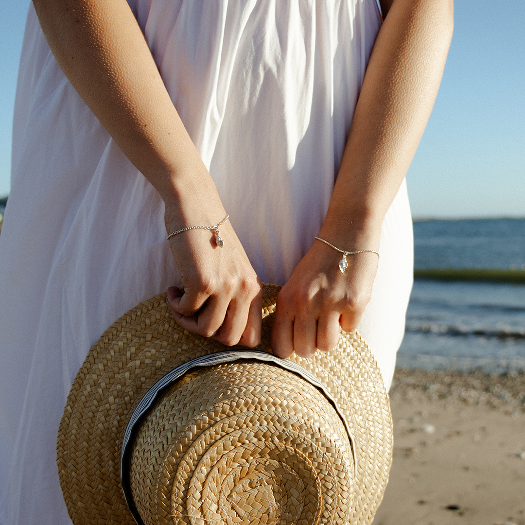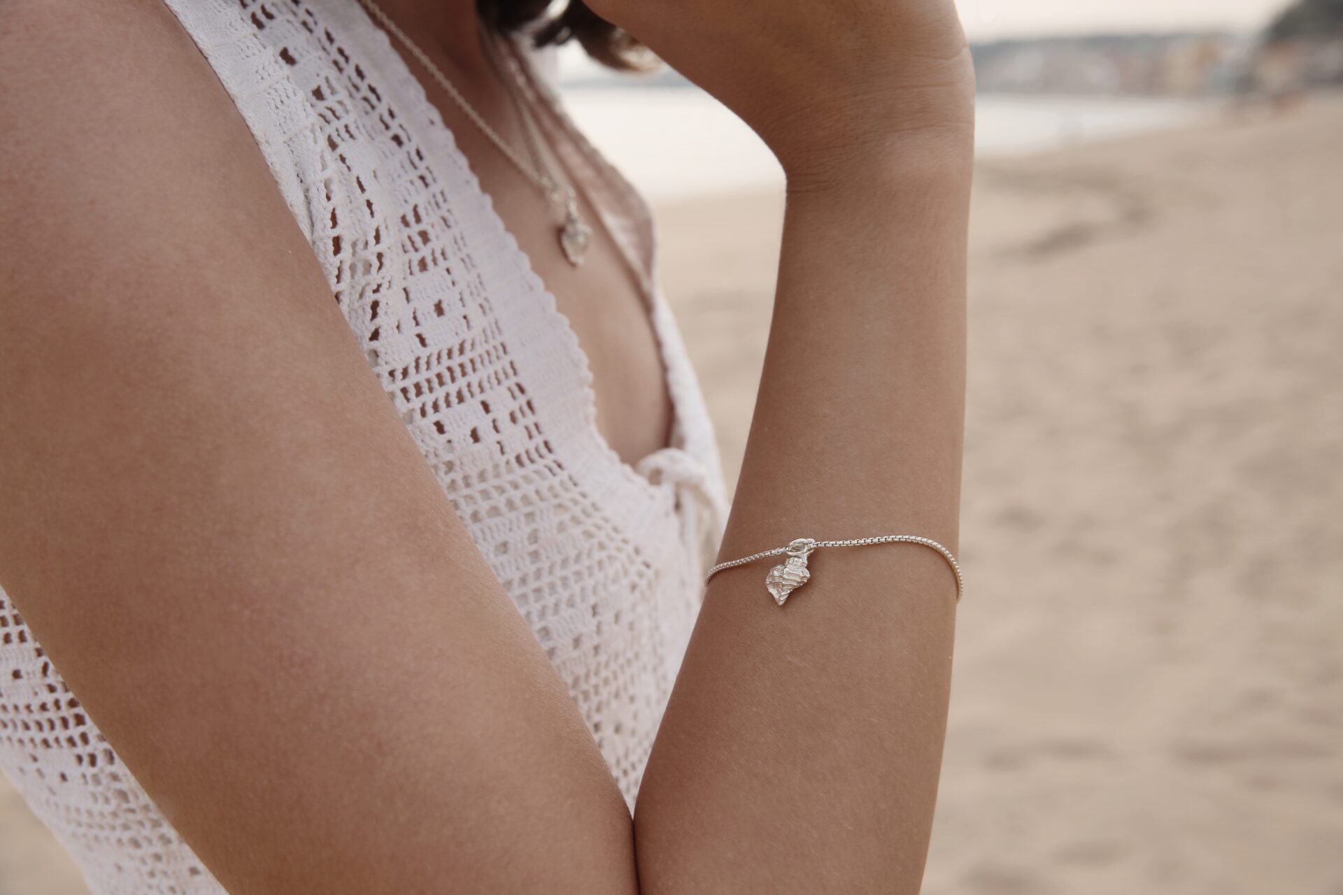 For the long summer days, where the reflection of the sun on the sea in a late afternoon has silver colours. The Silver Sea bracelets can be bracelets for the foot or to put on the wrist. It has a little kiss hanging from it so that it brings with it the memory of these days. A collection of sustainable jewellery made from the Leitão & Irmão workshop and limited edition until September.