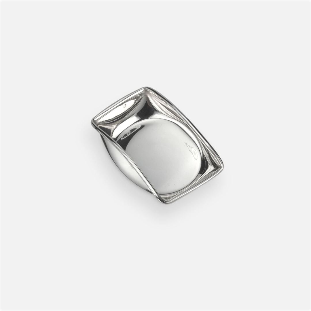 A silver piece manufactured in our centenary workshops, where a circular base salver is given a geometric shape through a long process of moulding, heating and cooling. The manual labour gives this piece a unique personality and identity.