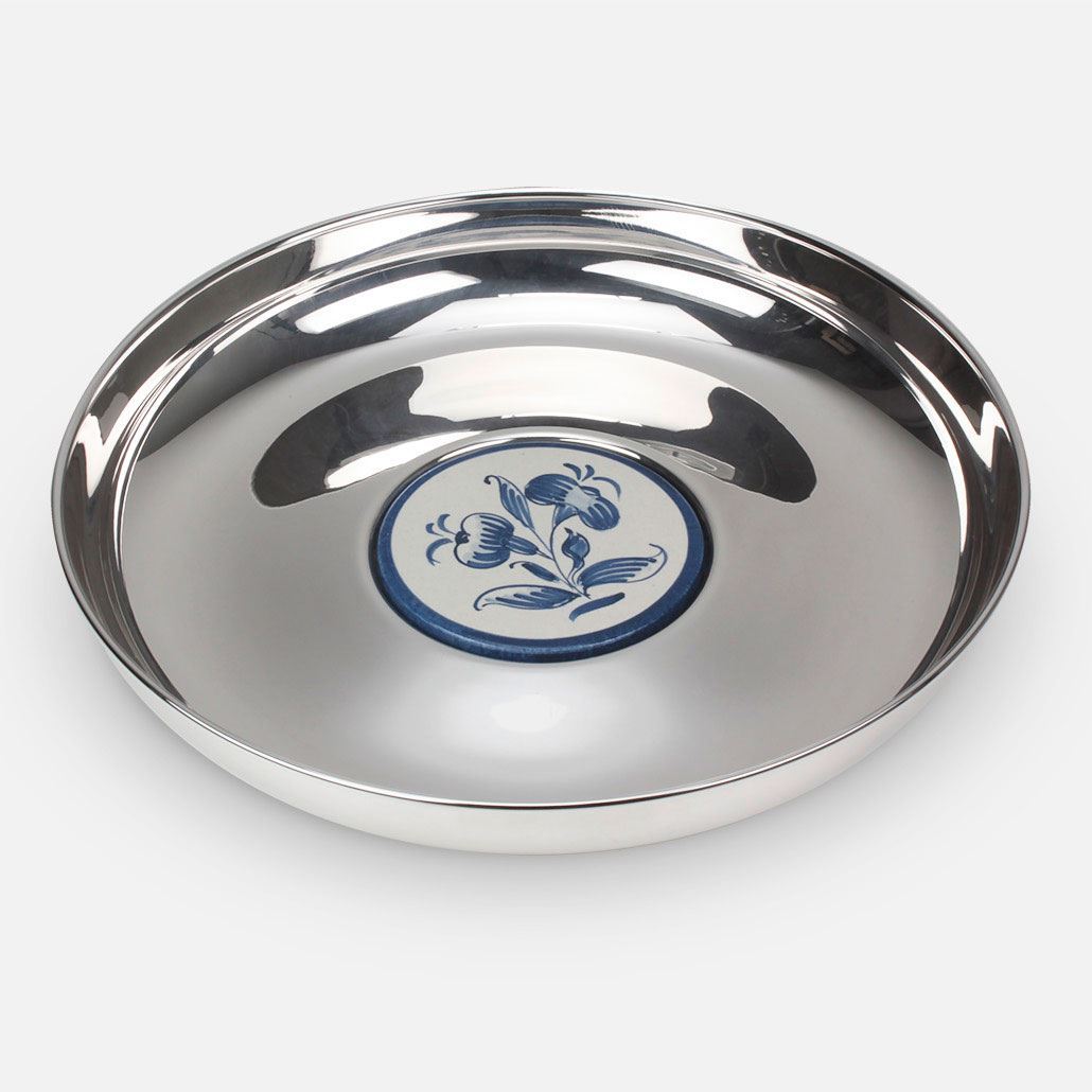 Introducing the Leitão & Irmão Portuguese Tile Silver Salver - a fusion of elegance and refined beauty. Inspired by Portugal's iconic azulejos, each delicate hand-painted tile reflects Portugal's historical heritage and meticulous workmanship.