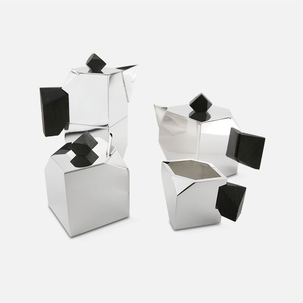 Formas geométricas inspiradas nas pirâmides do Egito desenham o Serviço de Chá Les Pyramides, manufaturado em prata. Uma obra de decoração desenvolvida pelos nossos mestres joalheiros, digna de Cleopatra.