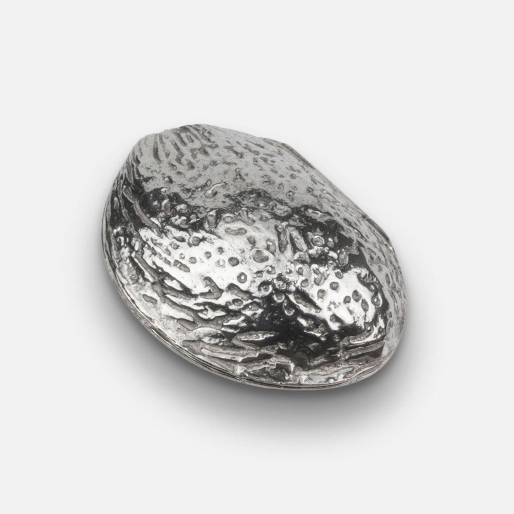 Caixinhas perfeitas para colecionar, para oferecer aos amantes da natureza, a quem tem tudo ou uma caixa para colocar os comprimidos. Os Frutos da Terra transformam em pequenas e preciosas caixinhas de prata os frutos que a terra nos dá, manufaturadas nas oficinas Leitão & Irmão. A amêndoa é nutritiva, saborosa, uma dádiva da natureza. Agora em prata 925 esculpida à mão.