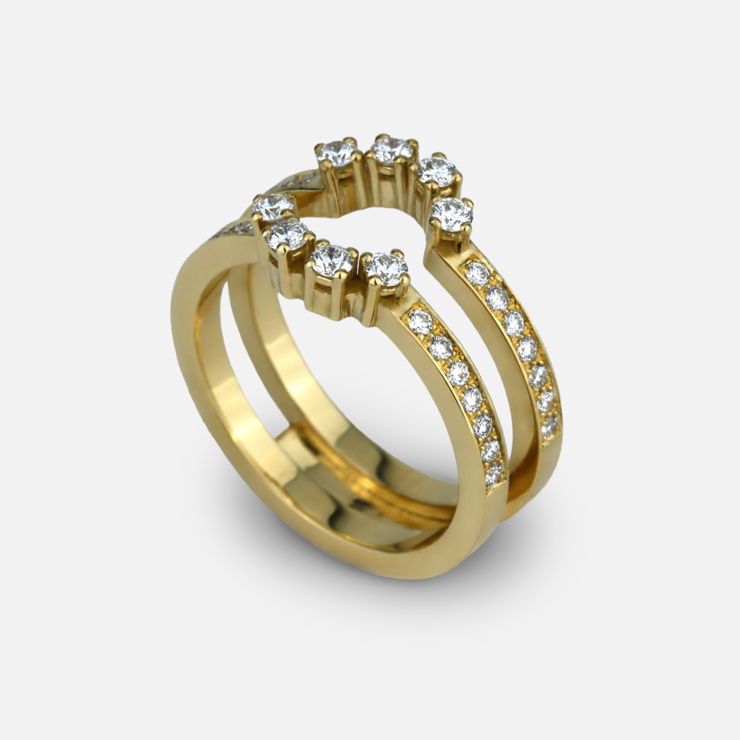 O anel é uma peça versátil que se pode usar de três formas diferentes. Um anel que se adapta a si.
