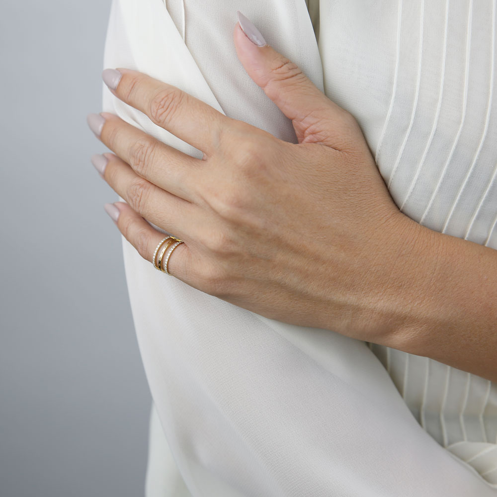 Anel Triple Diamond Thunder em ouro amarelo e diamantes by Débora Montenegro