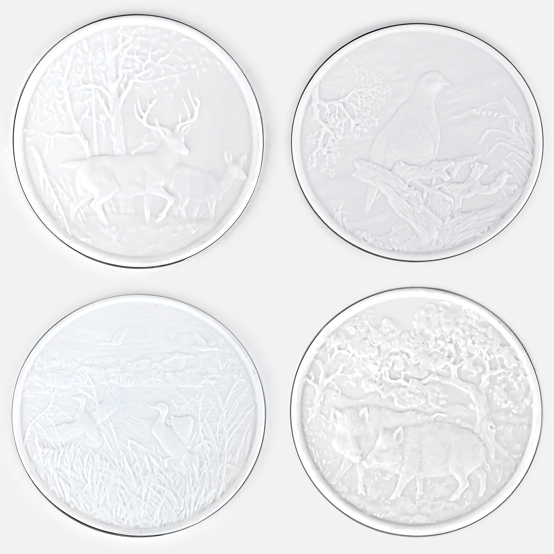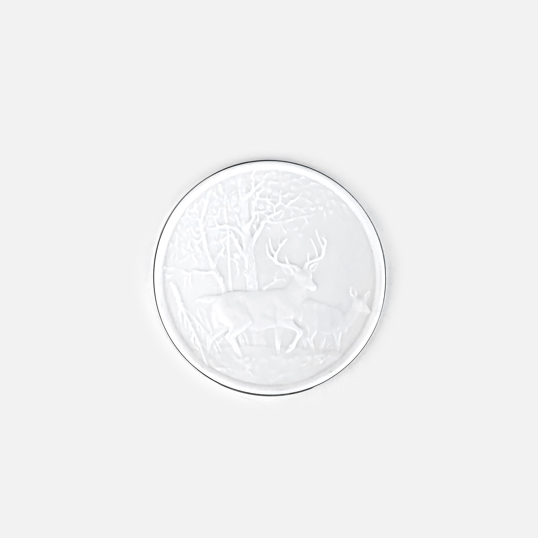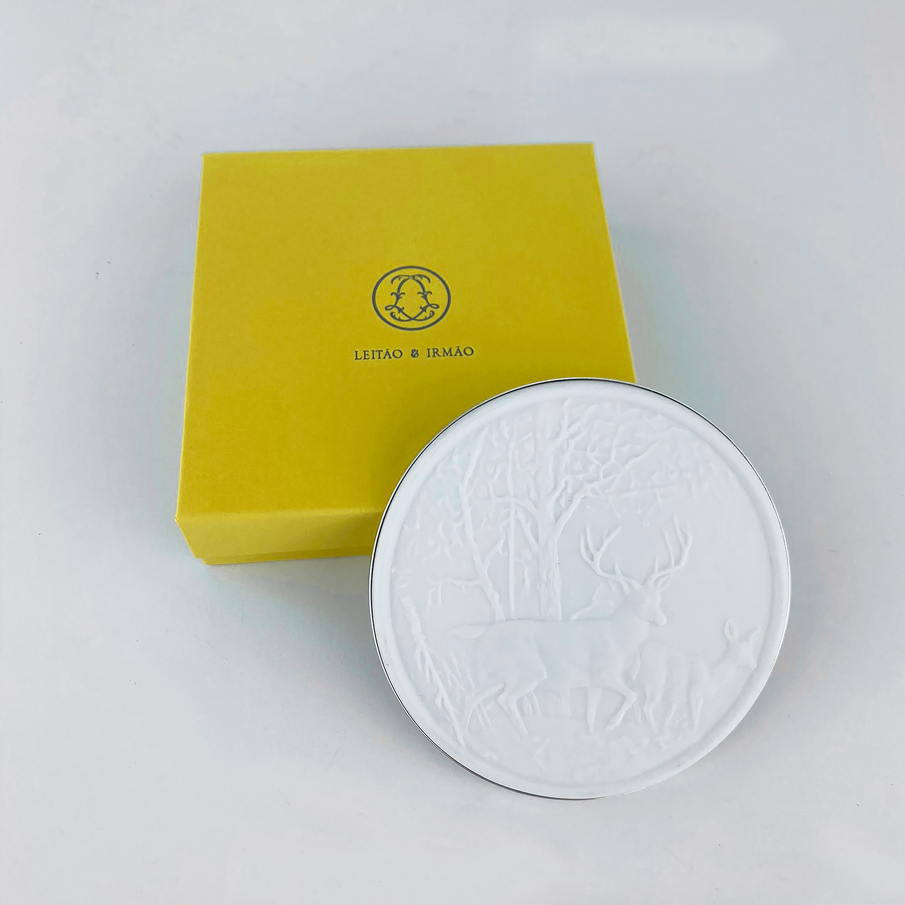 A base para copos Veado da Leitão & Irmão é uma peça que combina a delicadeza da porcelana biscuit com a elegância da prata.