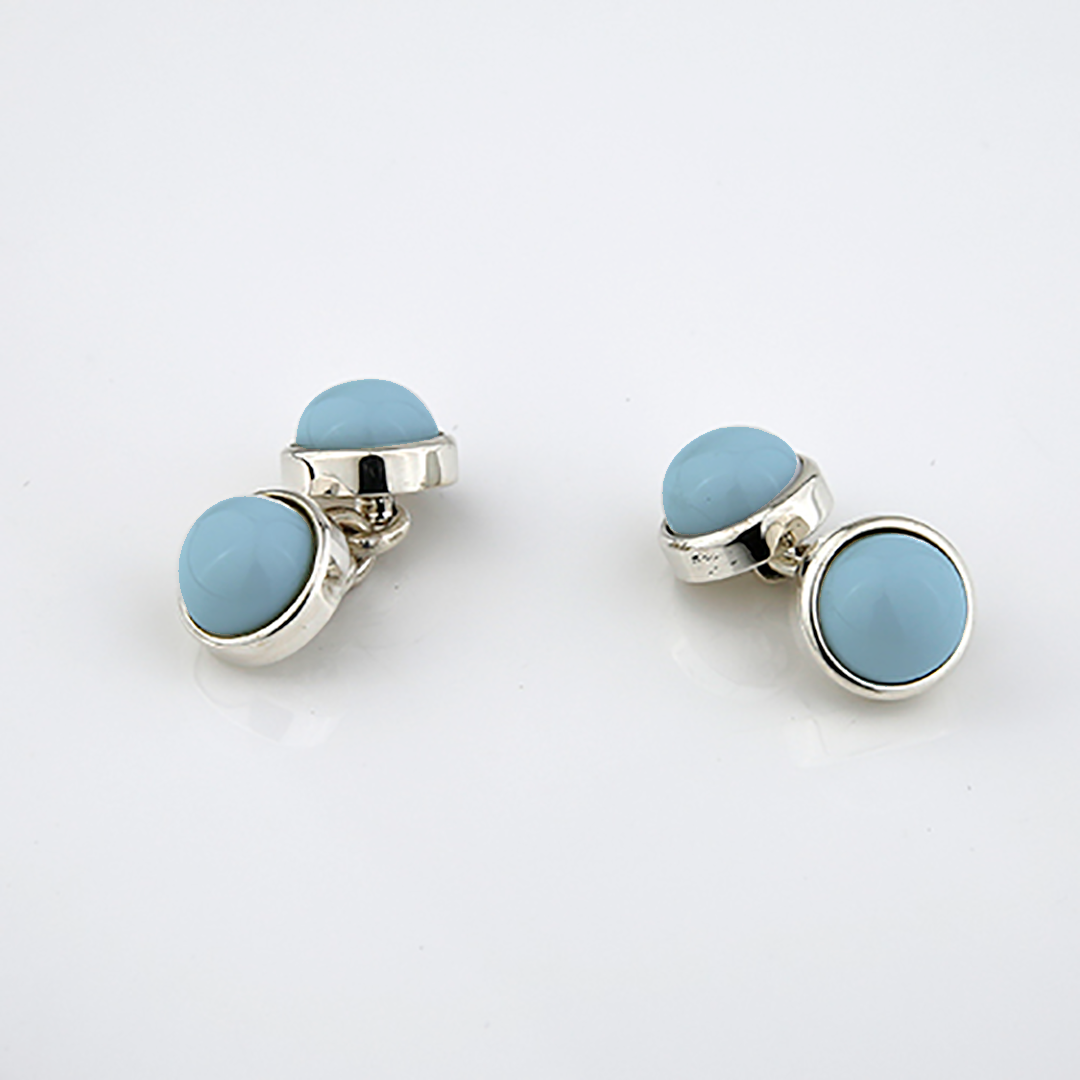 A coleção de Botões de Punho Porcelana tem a aplicação na prata da porcelana portuguesa pintada à mão, este modelo com dupla fase.