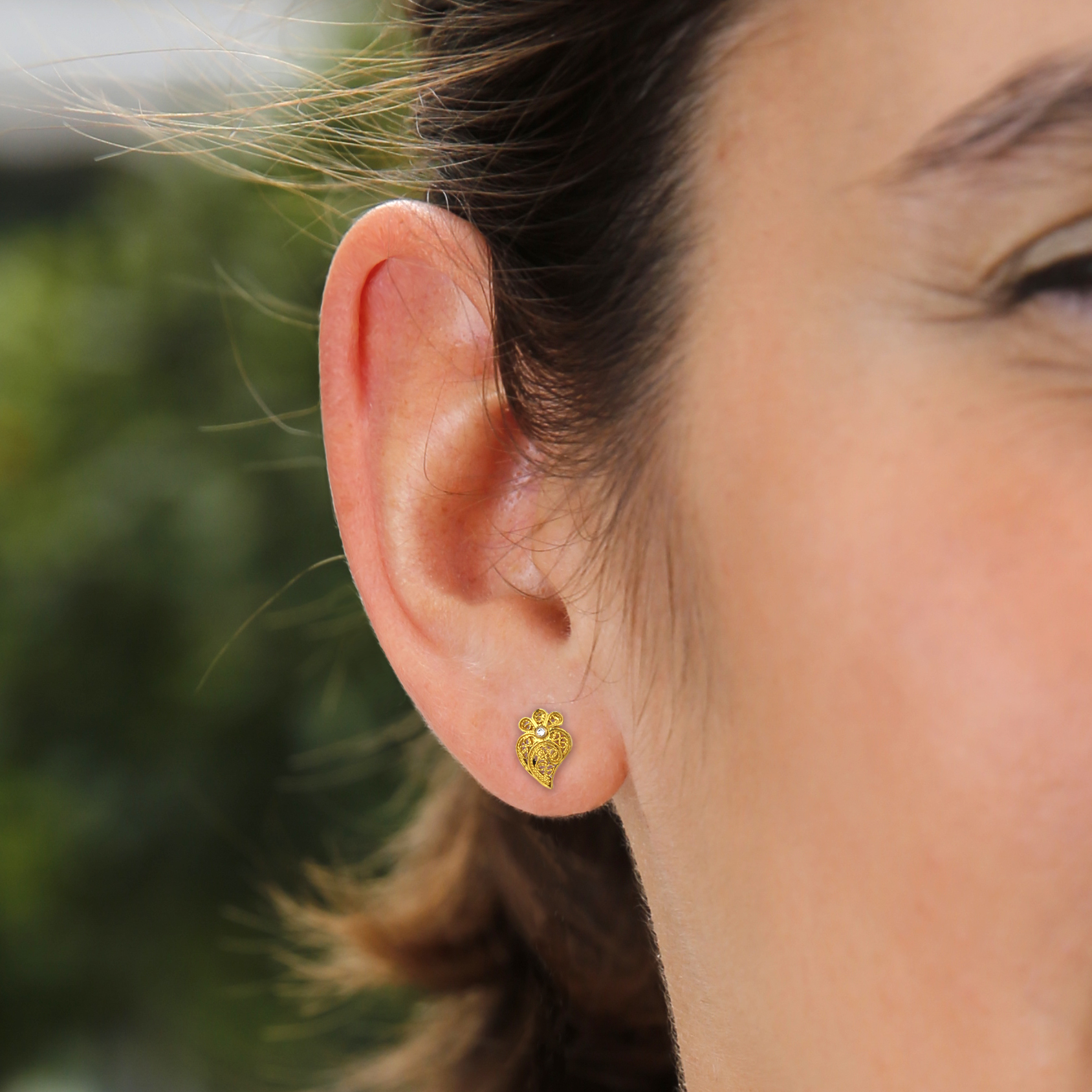 Brincos com coração de Viana em ouro e diamantes | Filigrana | Love Me