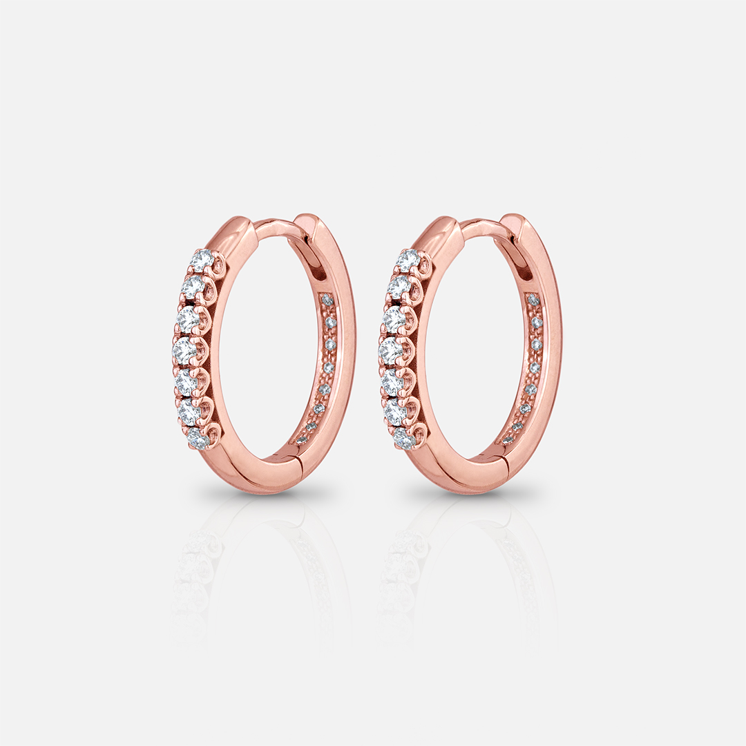 Apresentamos as argolas em ouro Rosa com diamantes. Estas argolas, clássicas e intemporais, são perfeitas para marcar momentos especiais ou simplesmente para adicionar um toque de luxo ao seu dia a dia. Deslumbre-se com a elegância e sofisticação desta coleção única. Combine diamantes com esmeraldas, rubis ou safiras.