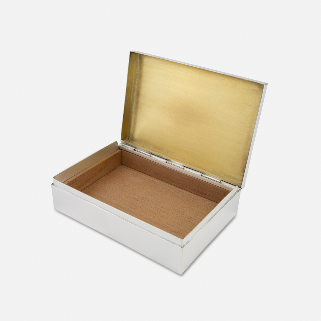 A Caixa de Mesa em prata com tampa lisa é uma peça de decoração sofisticada e funcional que acrescenta elegância e estilo a qualquer ambiente.