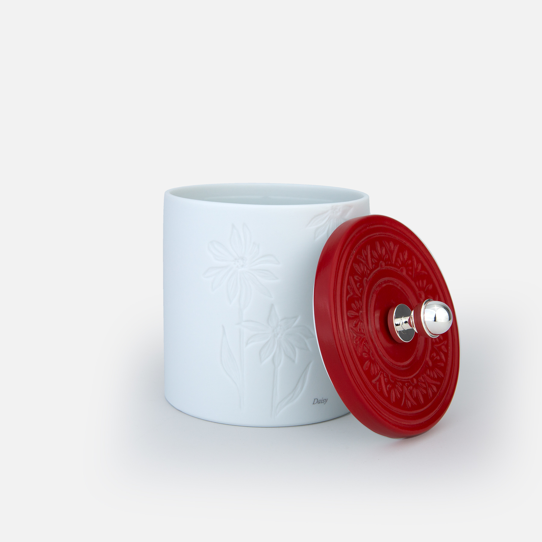 Caixa de Porcelana Daisy com pega em prata | Vermelho