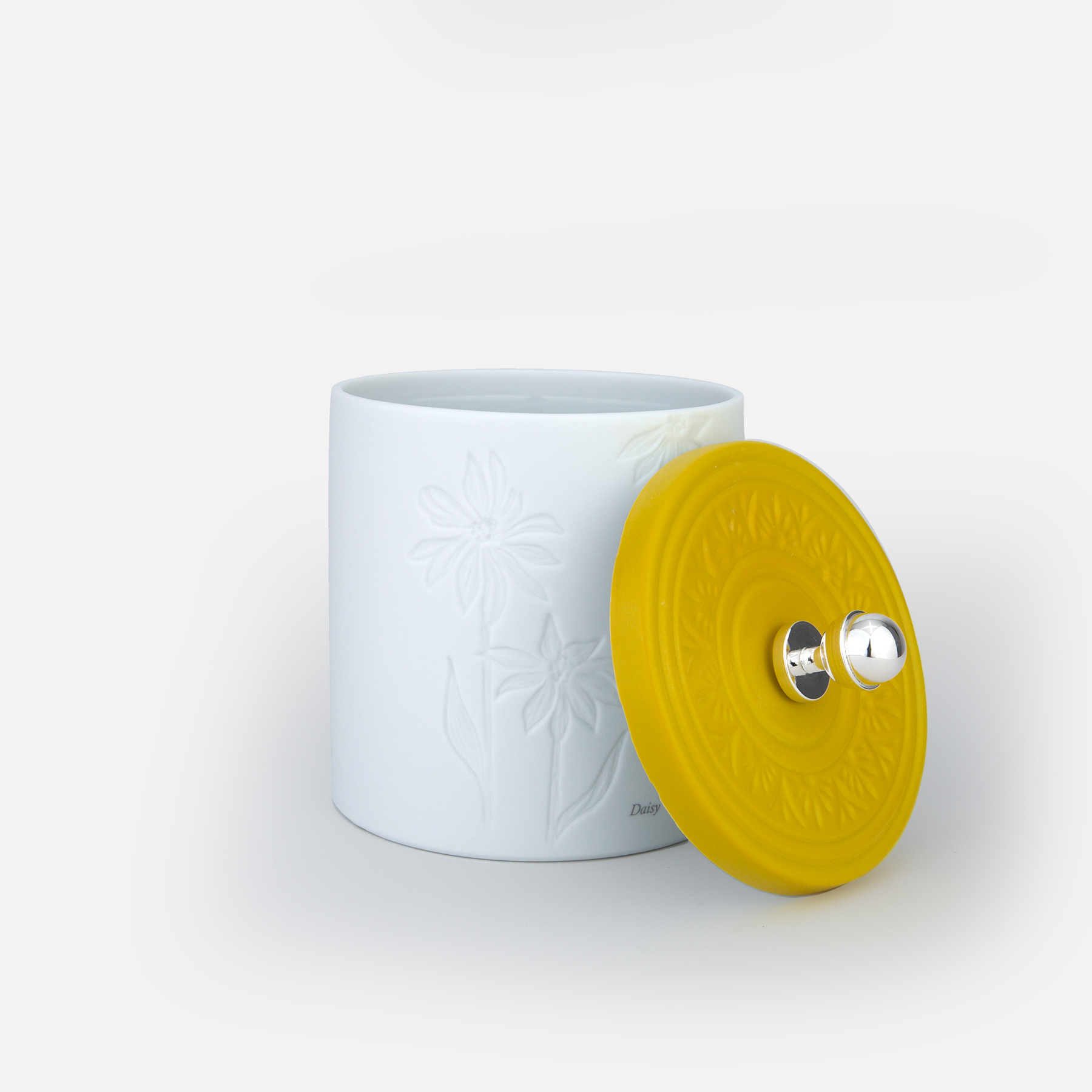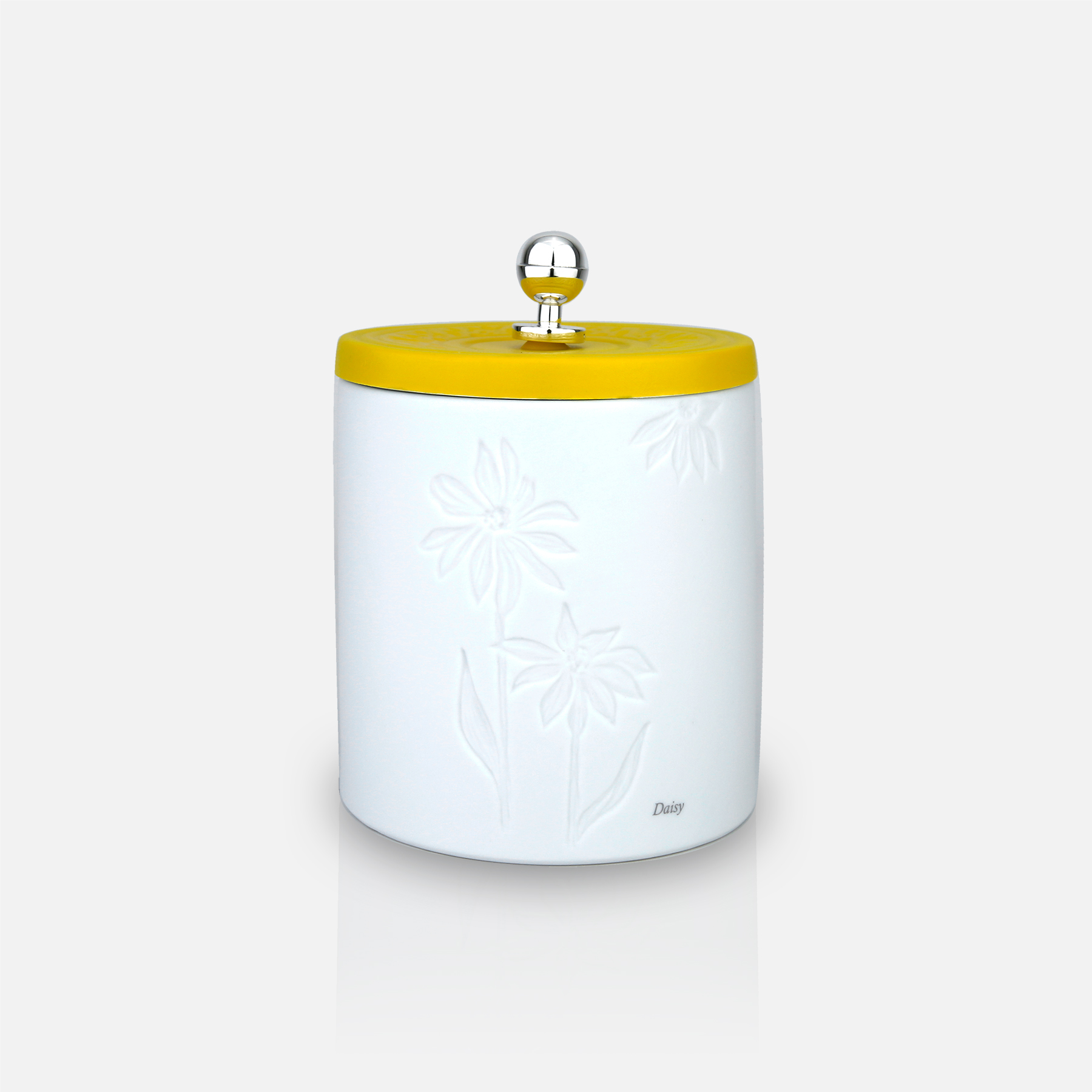 Caixa de Porcelana Daisy com pega em prata | Amarelo