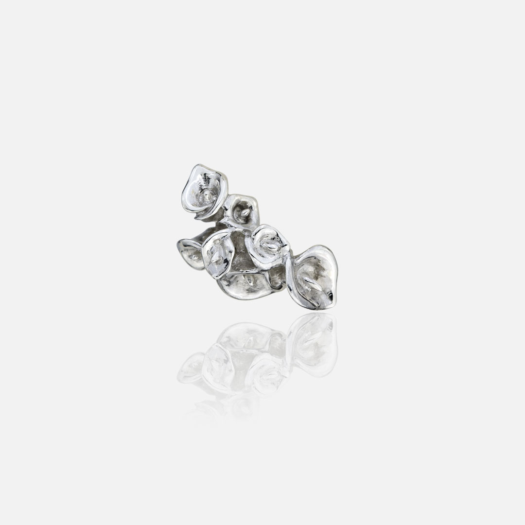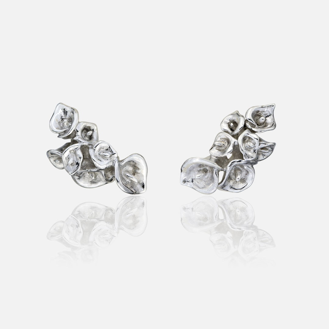 Brincos com formato de um pequeno bouquet de 7 jarros. O brinco esquerdo e direito são diferentes, permitindo uma melhor adaptação do bouquet à orelha. Design Carolina Curado e manufatura Leitão & Irmão. O brinco é comercializado à unidade.