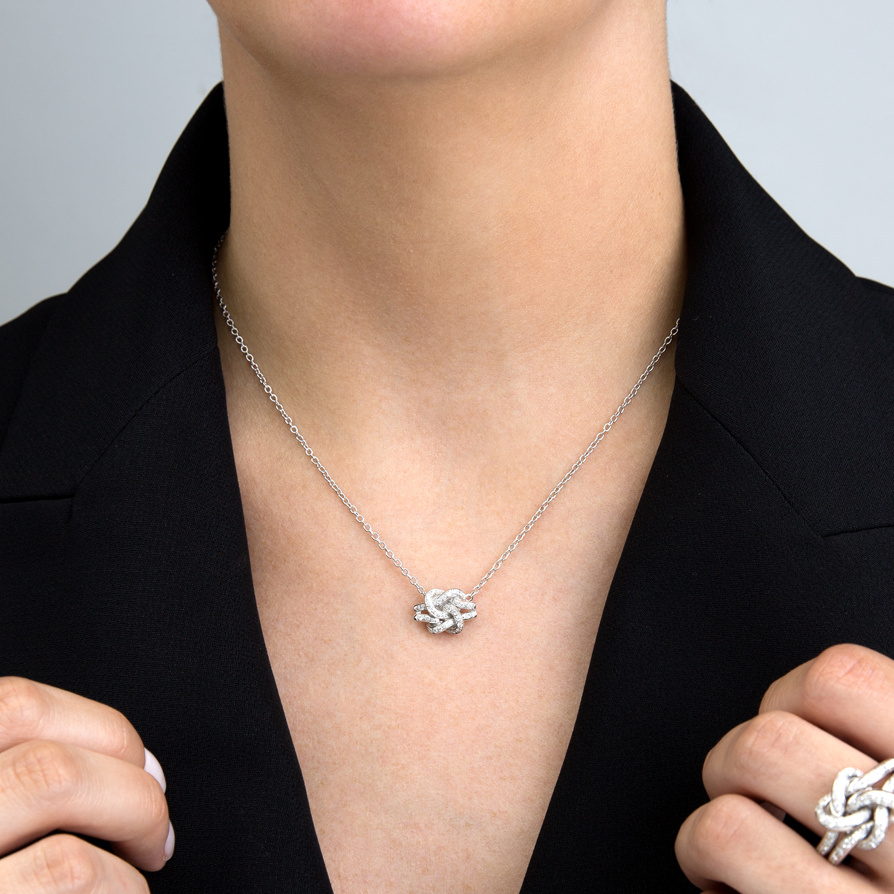 Cada joia conta uma história. O colar em ouro branco Knot Me conta a história da ligação entre duas pessoas com o brilho dos diamantes. Uma joia clássica para passar de geração em geração.