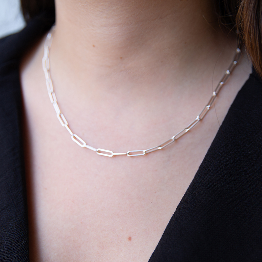 O Fio Trace Wide Rectangle em prata é um colar elegante e sofisticado com um design espelhado e uma espessura de 2.8 mm em prata. Ideal para o dia a dia.