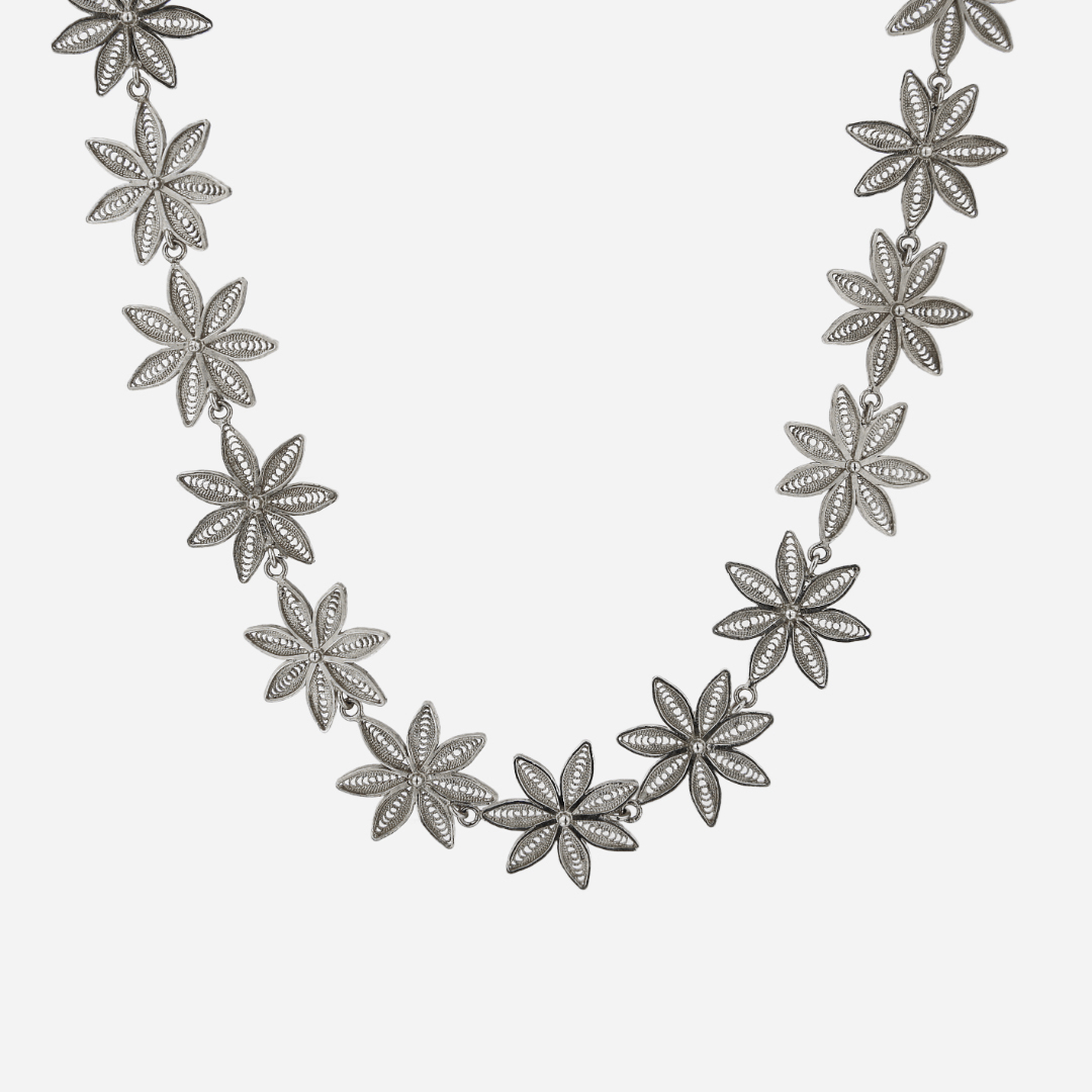 Em Prata 925, a gargantilha Estrelas é um exemplo da filigrana portuguesa. A mais bela e moderna filigrana portuguesa na qualidade Leitão & Irmão.
