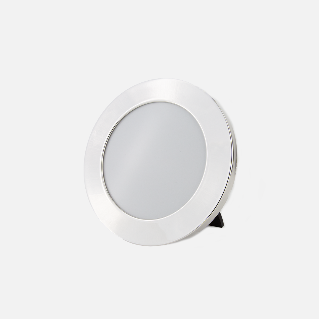 Descubra a moldura redonda lisa em prata da leitão & Irmão.