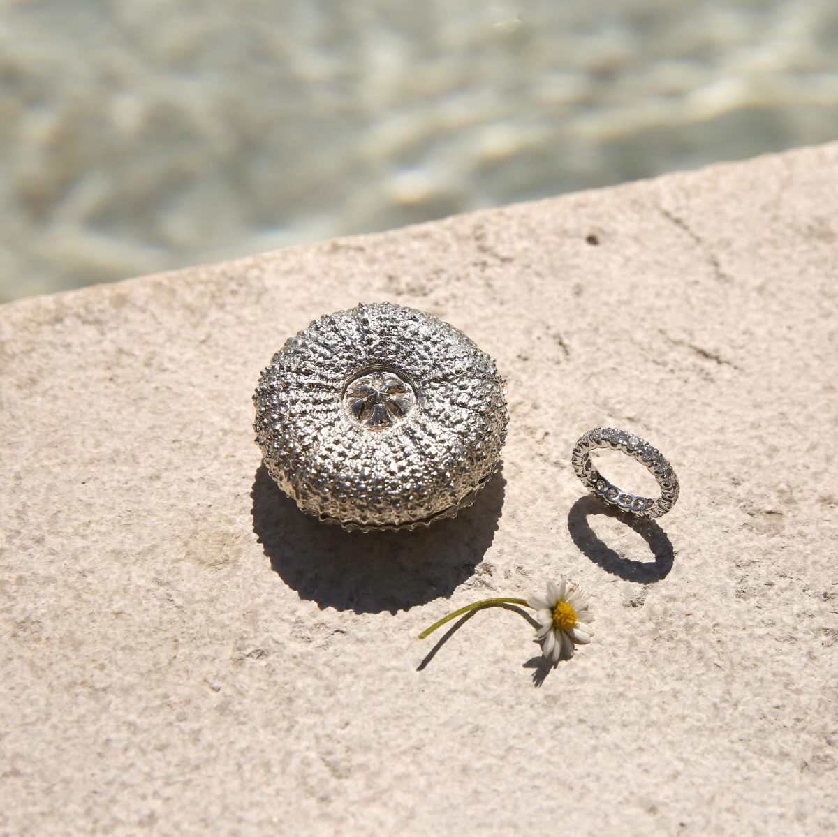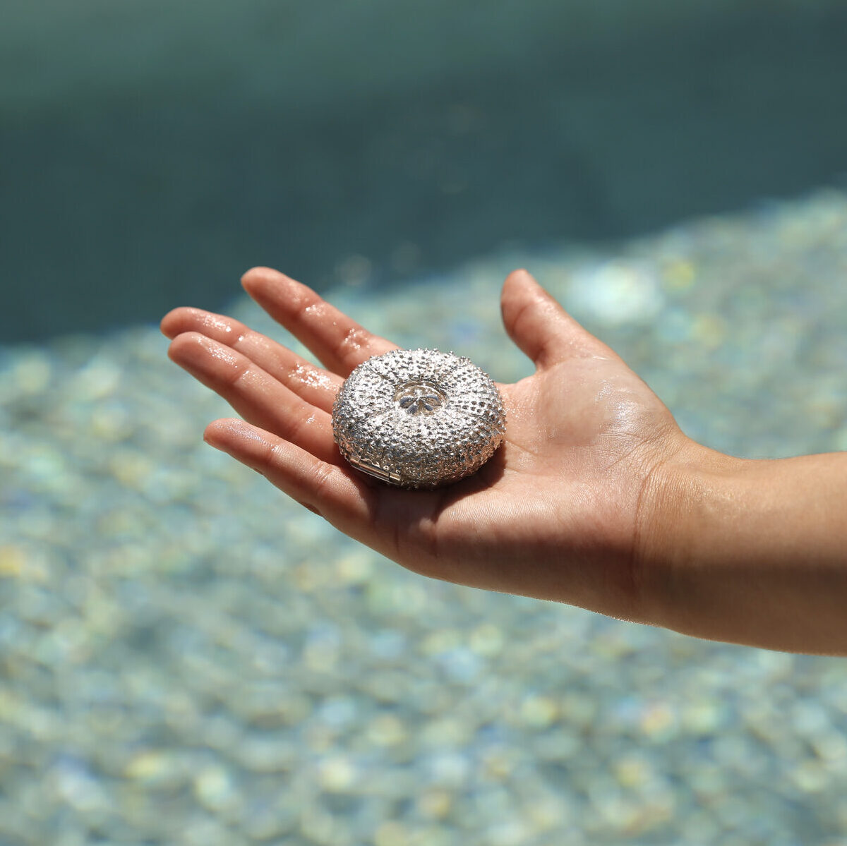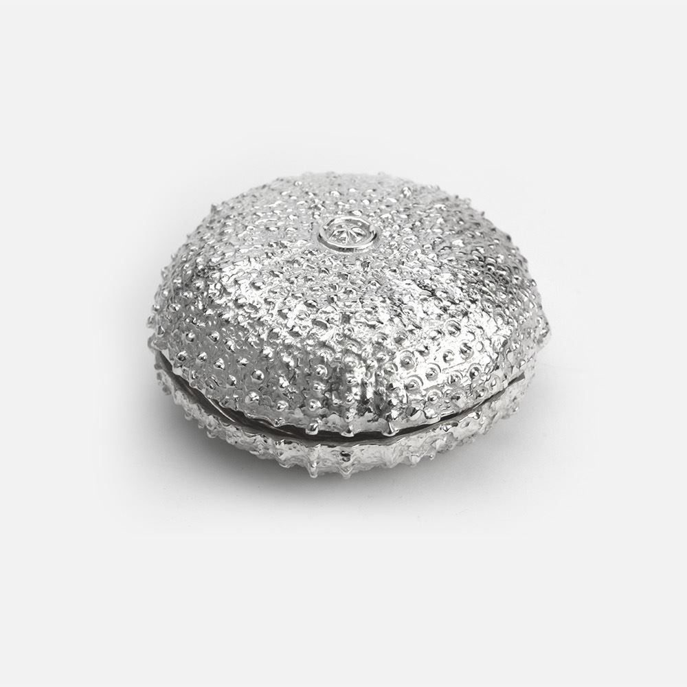 O ouriço do mar cujas ovas são consideradas uma iguaria em algumas regiões, toma a forma de uma caixinha em prata. Caixinhas em prata, perfeitas para colecionar, para oferecer aos amantes da natureza, a quem tem tudo ou uma caixa para colocar os comprimidos.
