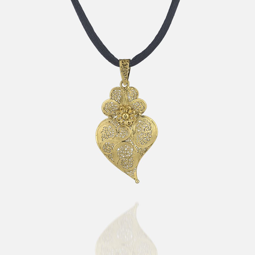 Descubra o Pendente Coração de Viana Flamejante em prata dourada.
