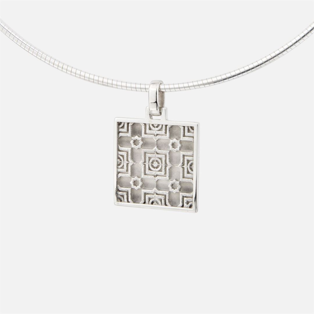 Inspirada nos desenhos dos azulejos das mais belas ruas de Portugal. O Pendente Santa Catarina em prata da coleção Azulejo Português é uma peça delicada, cheia de pormenor. Uma joia moderna para que se destacar.