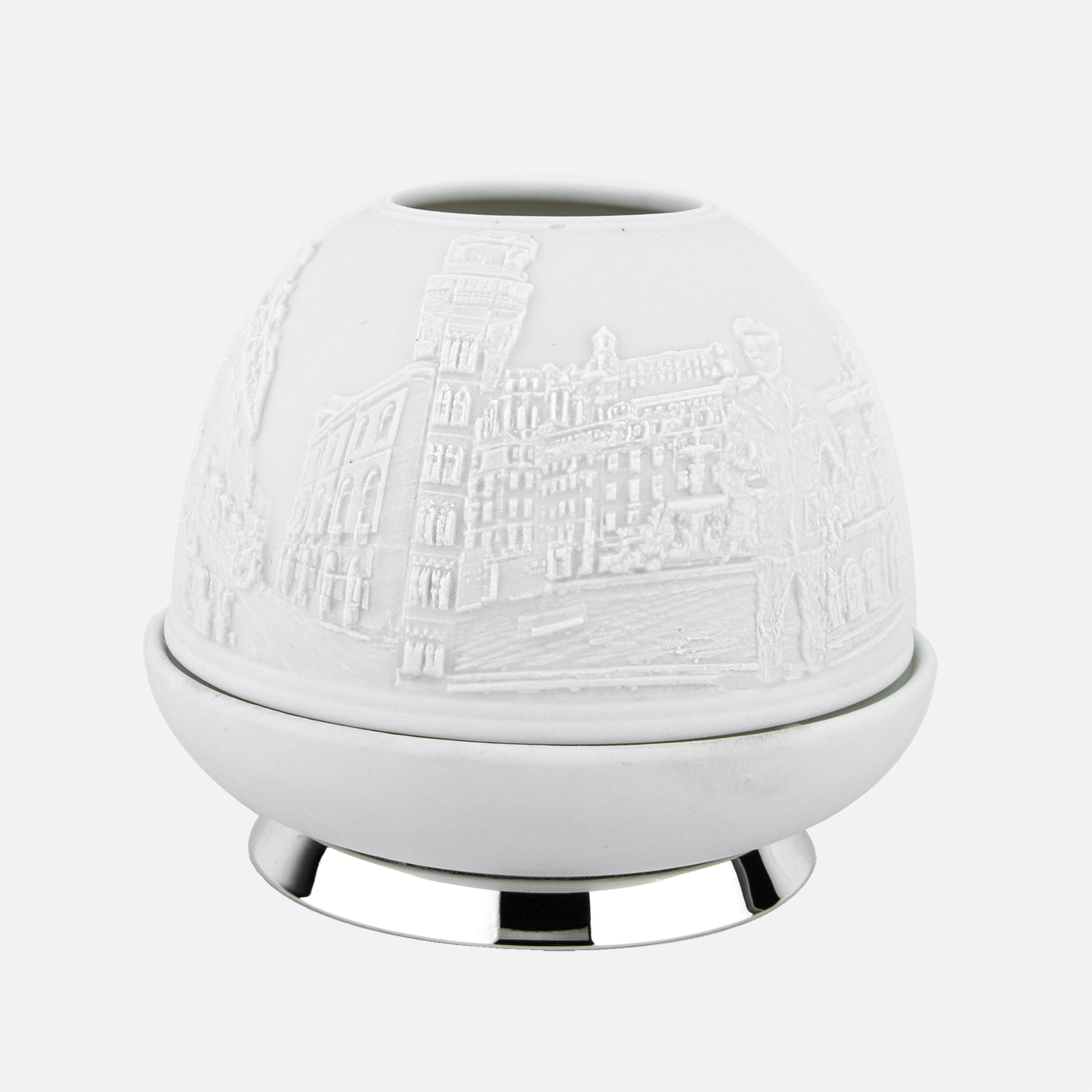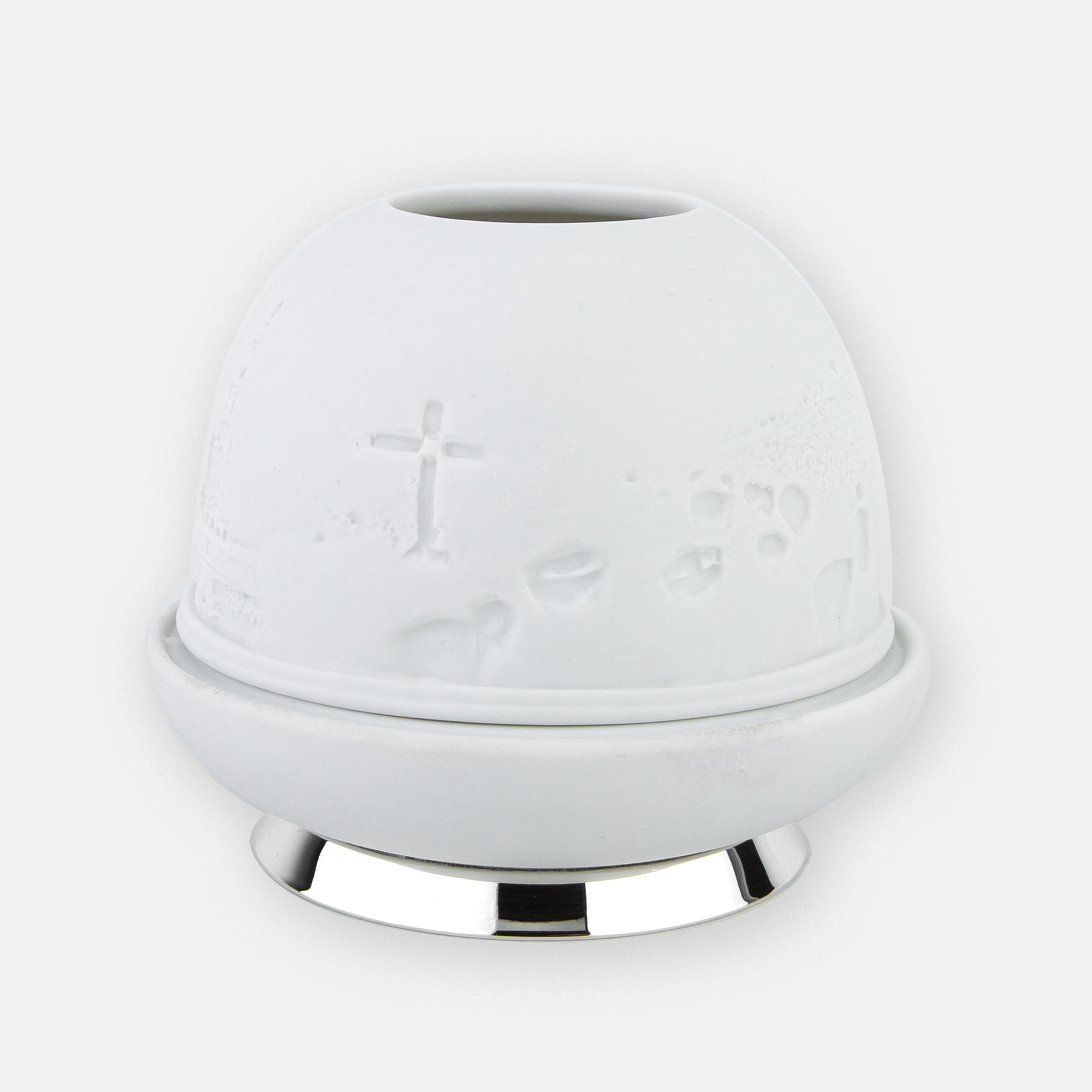 O Porta-Velas em Porcelana e Prata inspirado na Procissão das Velas é uma peça que combina a delicadeza da porcelana com a sofisticação da prata. Acrescente um toque de elegância e luz suave ao seu espaço.