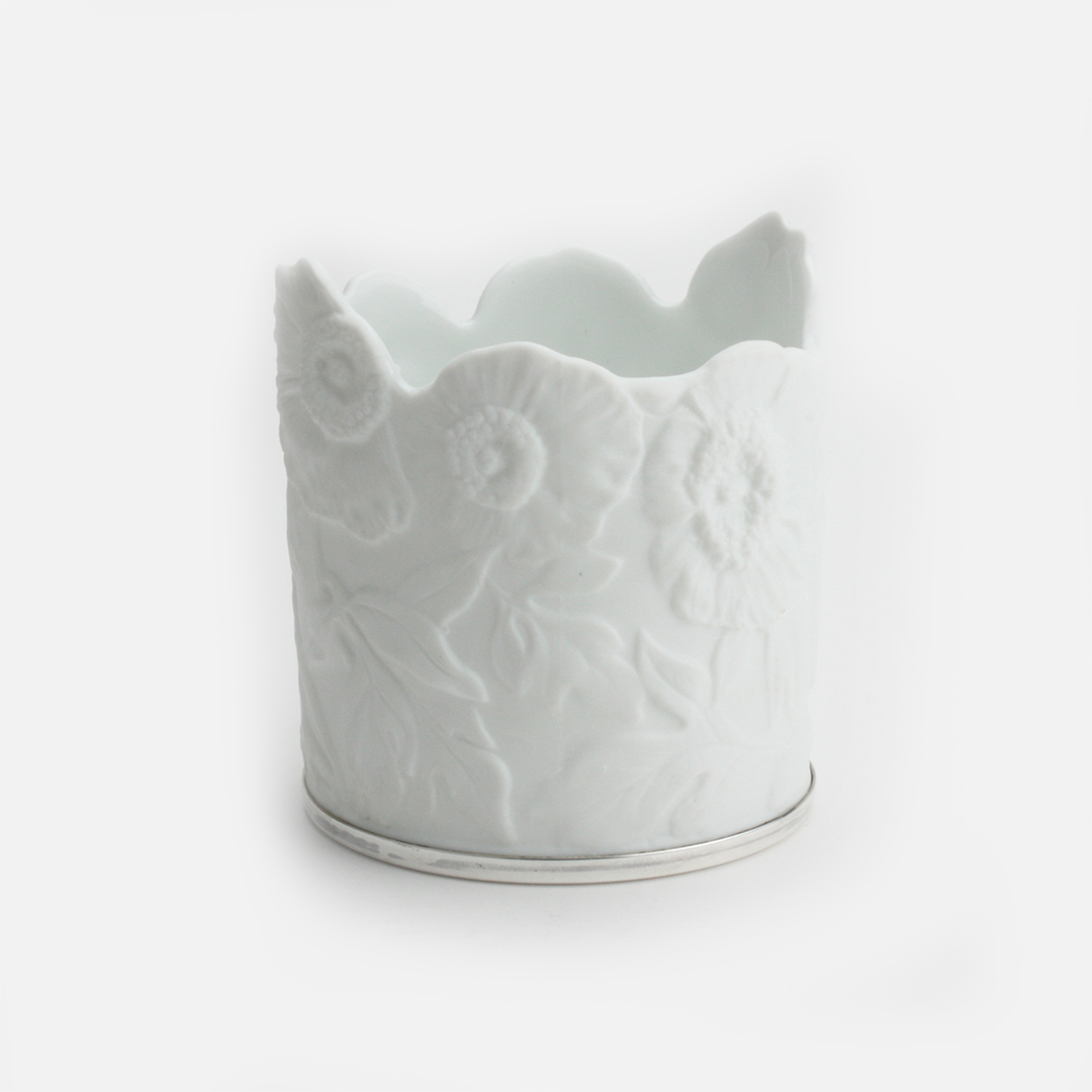 O Porta-Velas em porcelana biscuit e prata é uma peça que combina a delicadeza da porcelana com a sofisticação da prata. Acrescente um toque de elegância e luz suave ao seu espaço.