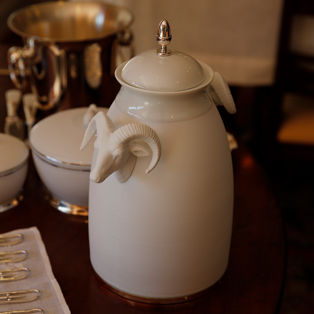 Pote Muflão em porcelana biscuit e prata