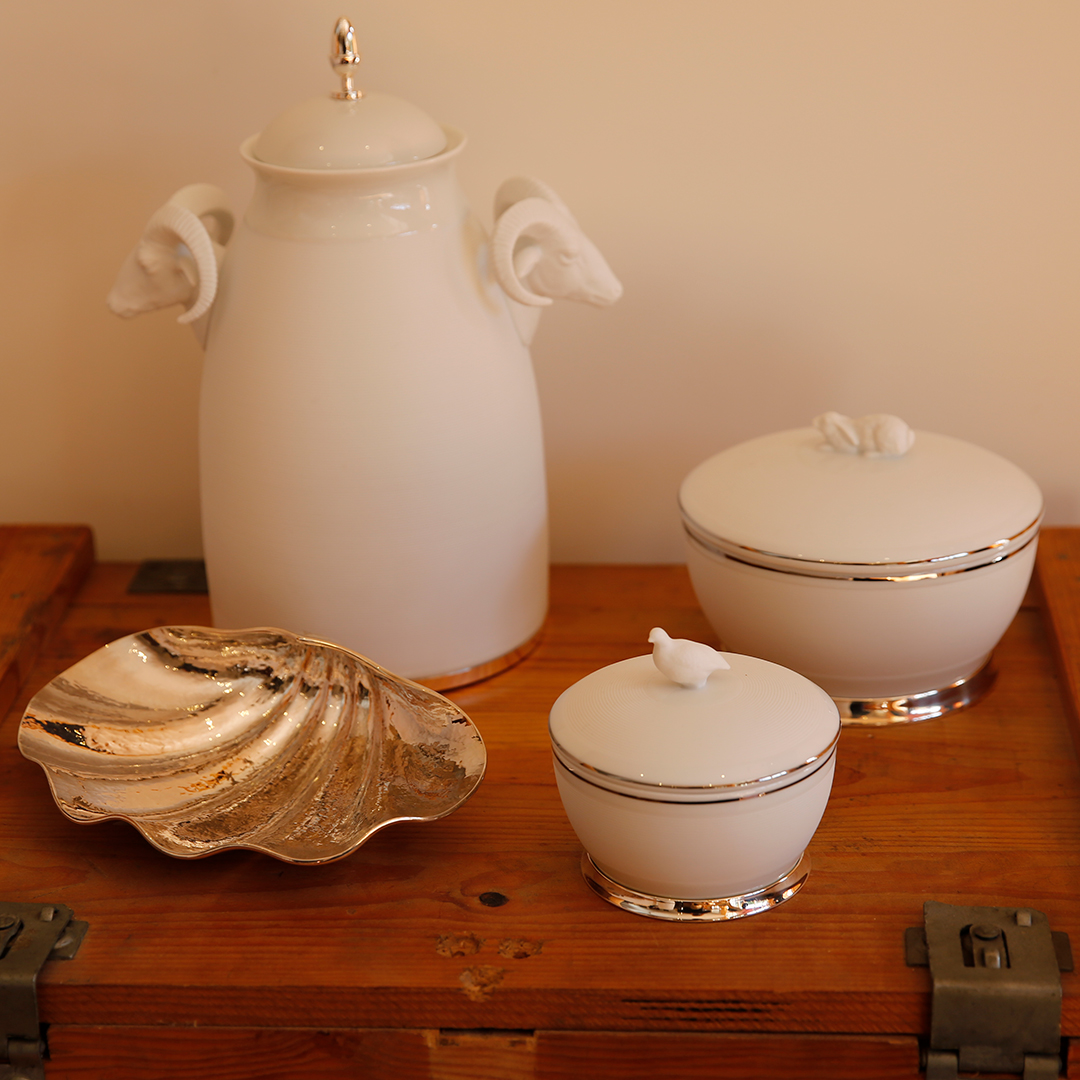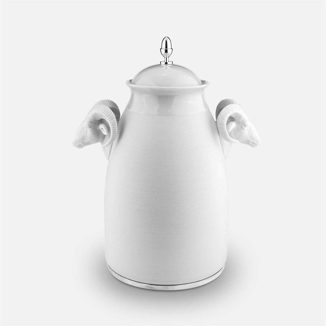 O Pote Muflão em porcelana biscuit e prata é uma peça que combina a delicadeza da porcelana com a sofisticação da prata. Acrescente um toque de elegância ao seu espaço com a suavidade e delicadeza da porcelana biscuit.